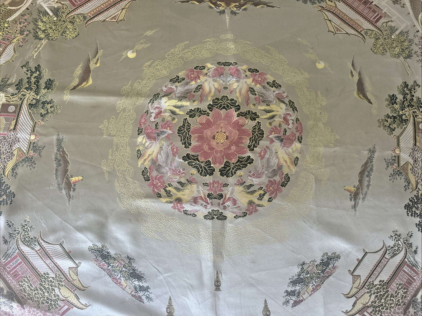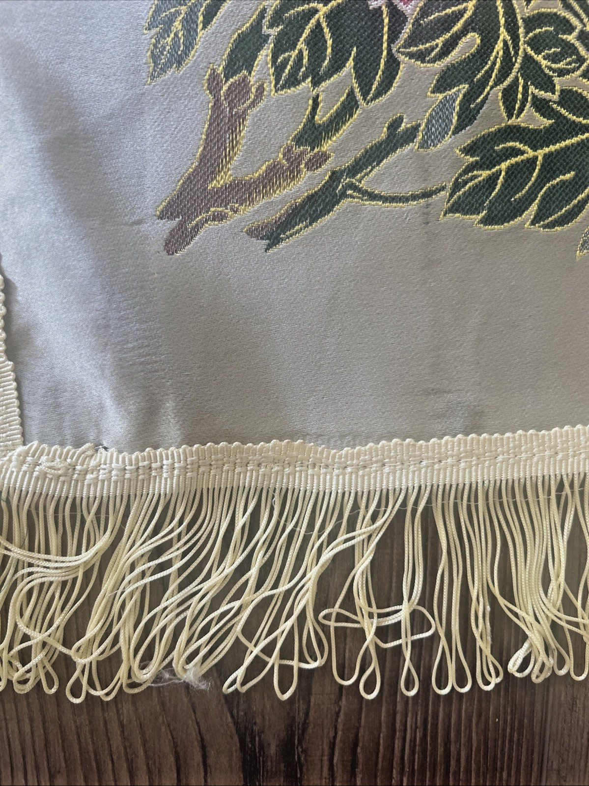 как выглядит VINTAGE Silk BROCADED Fringed CHINESE Piano Shawl Floral Textile Handmade 55" SQ фото