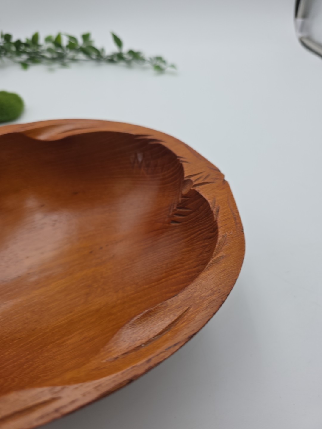 как выглядит Vtg Folk Art Hand Carved Wood Nut Shell Bowl 3 X 8 X 10" фото