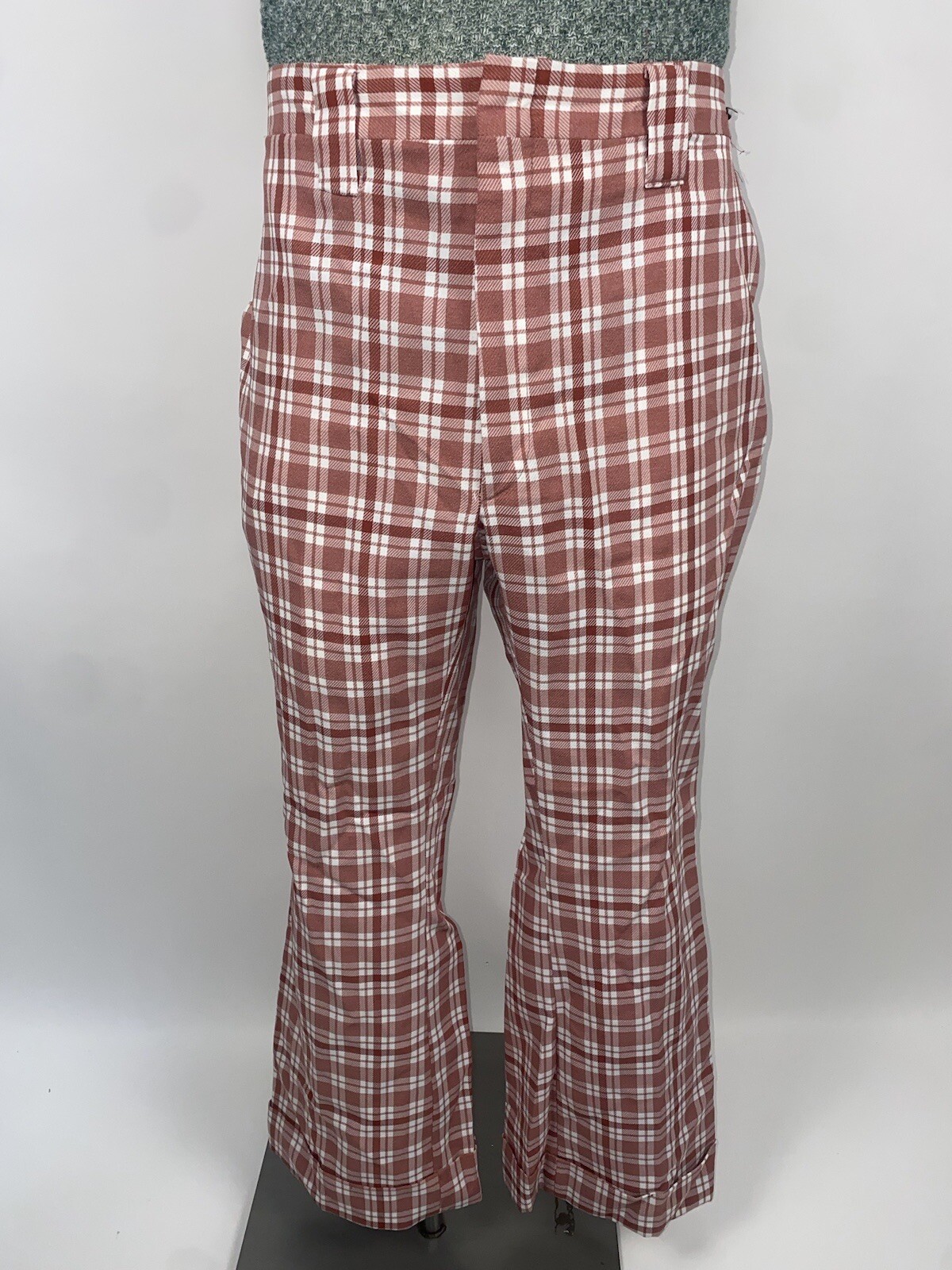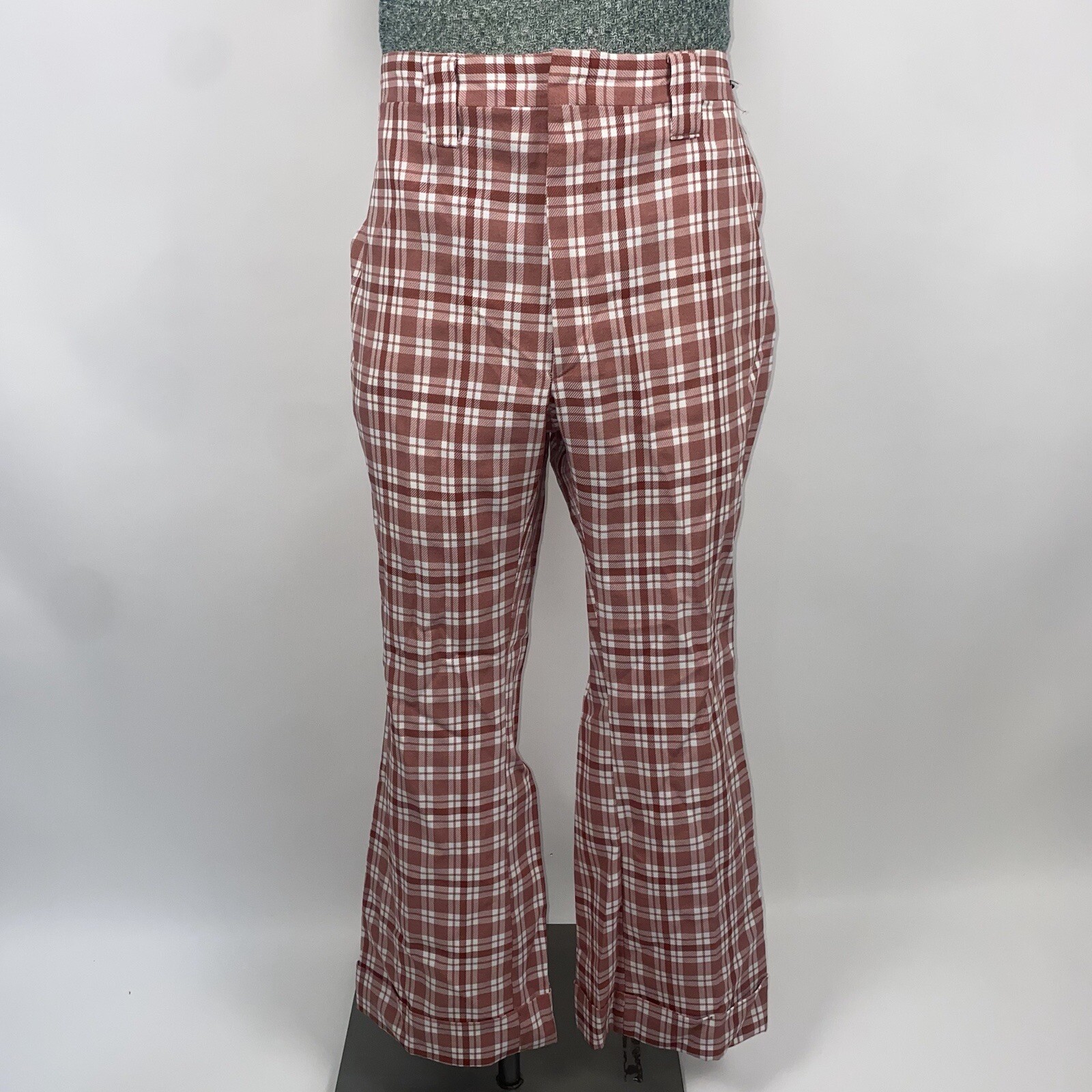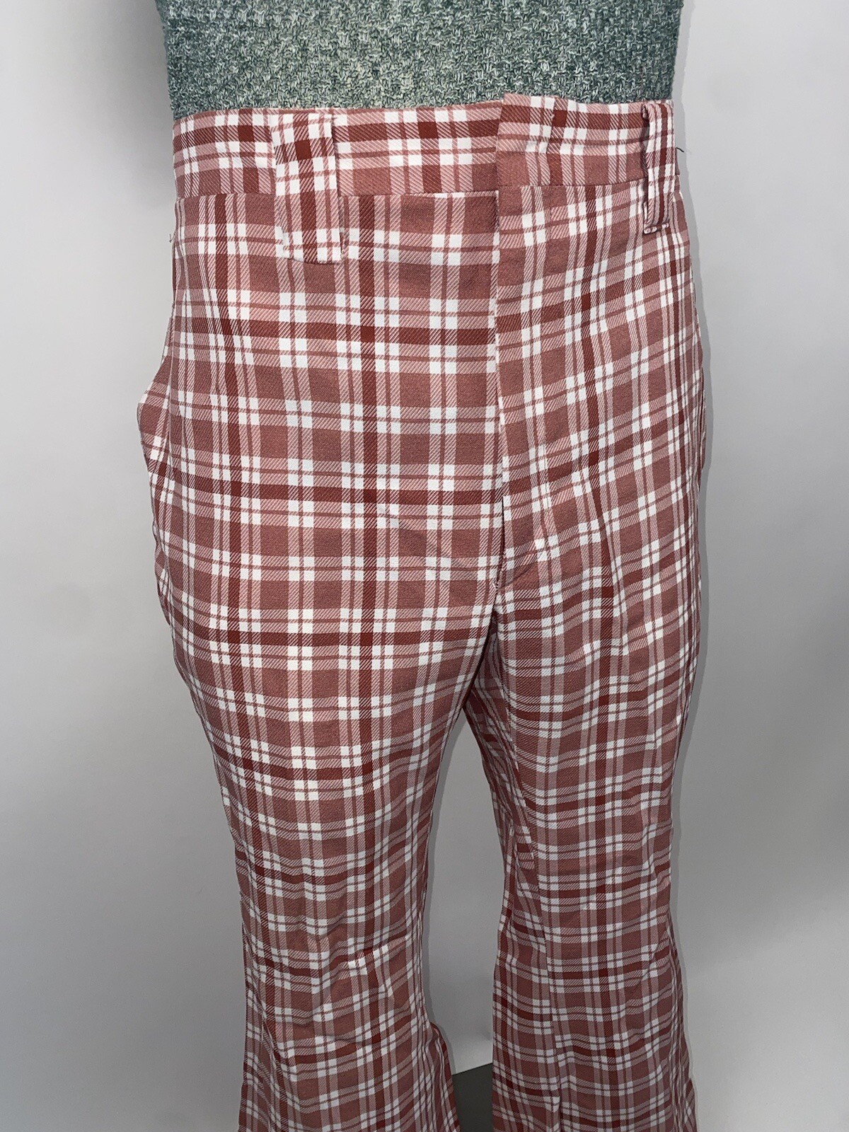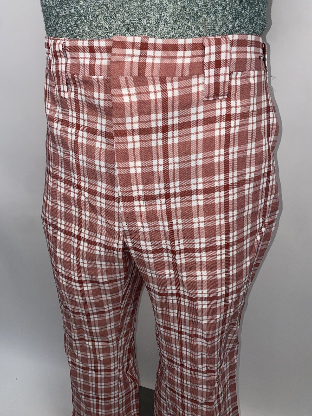 Vtg 60s 70s Bell Bottom Pants Mens Polyester Leisure Suit Disco Pink Plaid 36 29