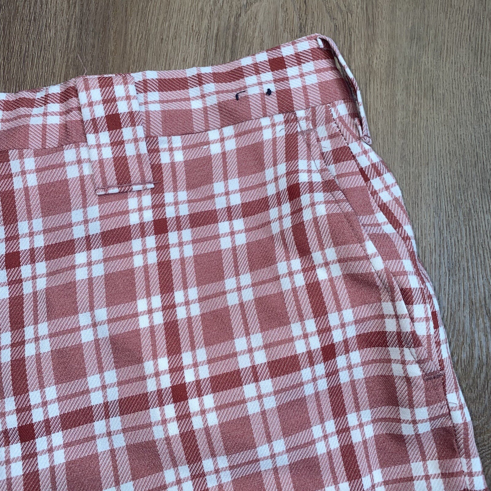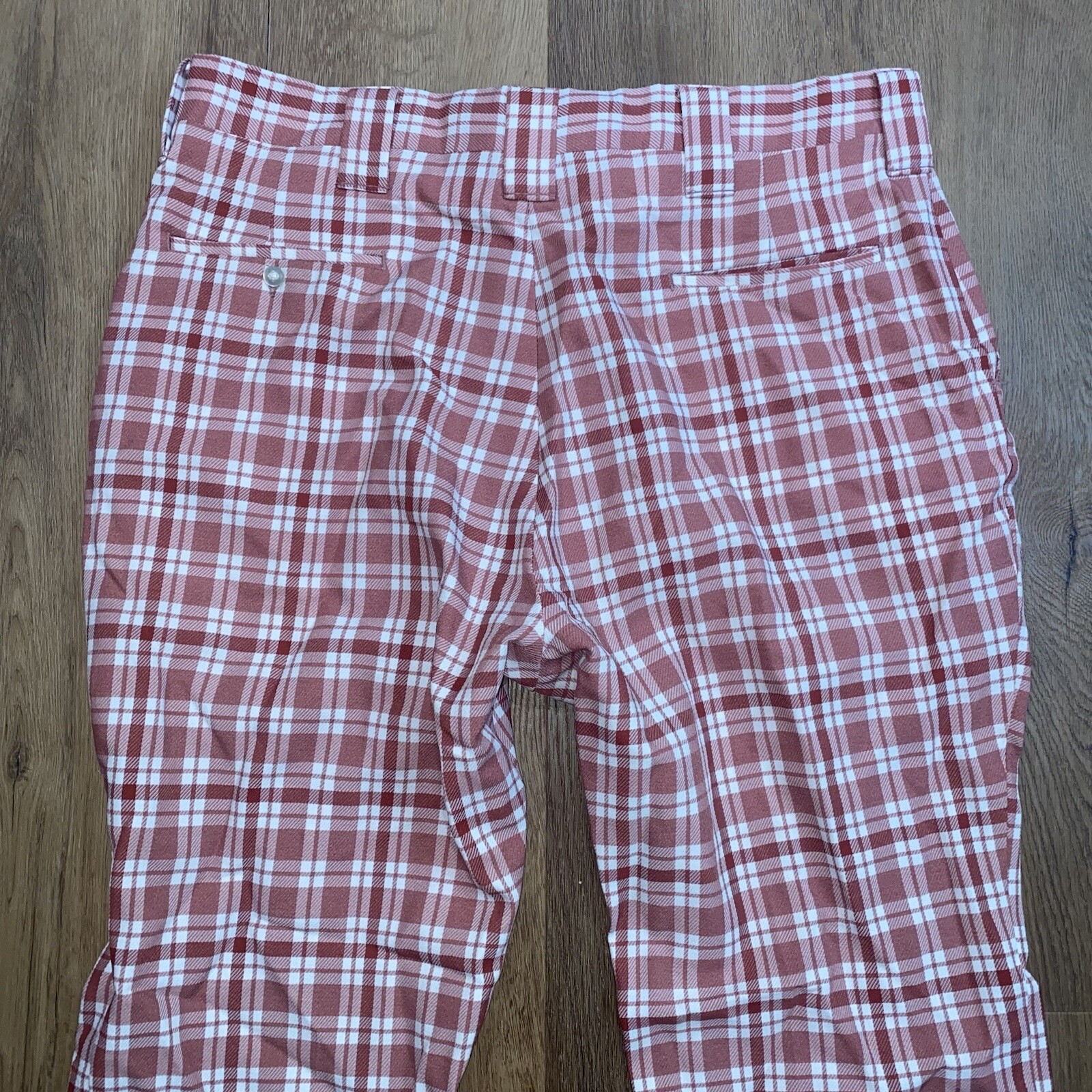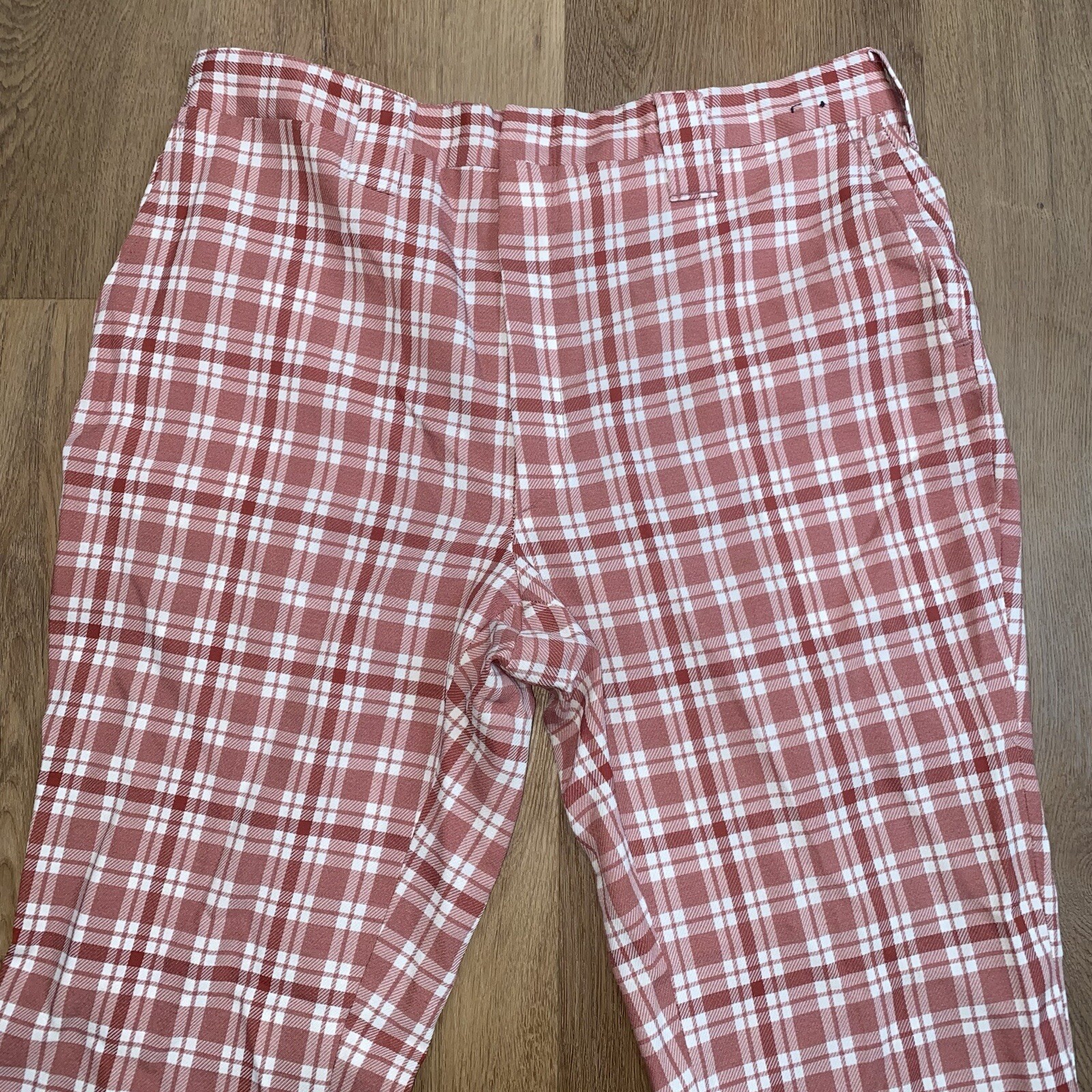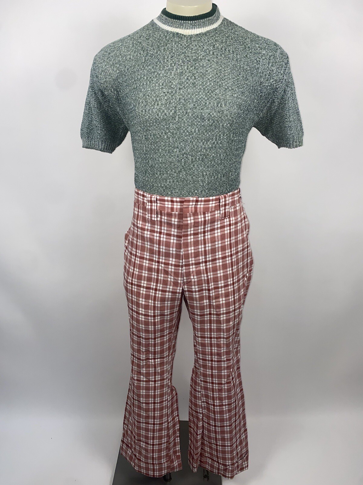 Vtg 60s 70s Bell Bottom Pants Mens Polyester Leisure Suit Disco Pink Plaid 36 29