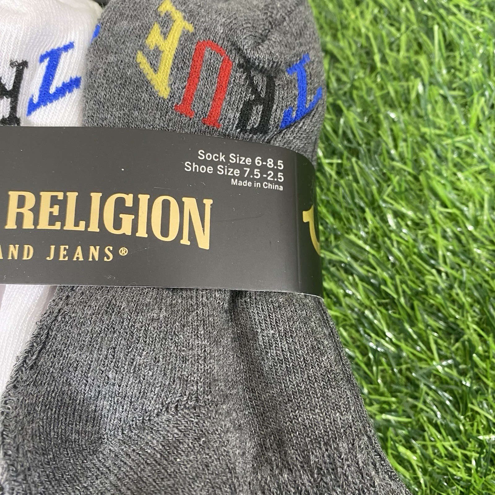 True Religion Quarter Socks Boys Solid Black Gray White 10 PK Sock Size 4-6.5