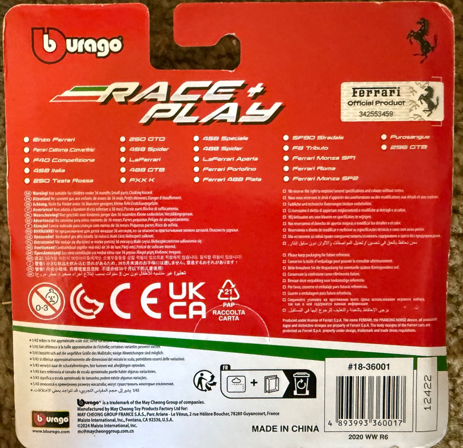 как выглядит 1/43 Burago Diecast Race Play Ferrari SF90 Straddle Coupe Brand New on Card фото
