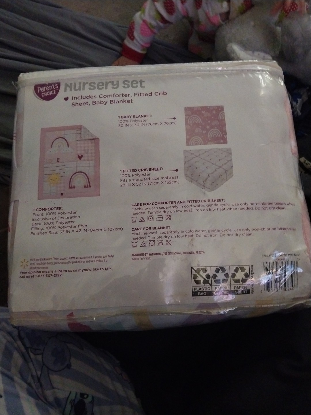 3 Piece Parent's Choice Nursery Set Bedding- Pink Rainbow Sunshine