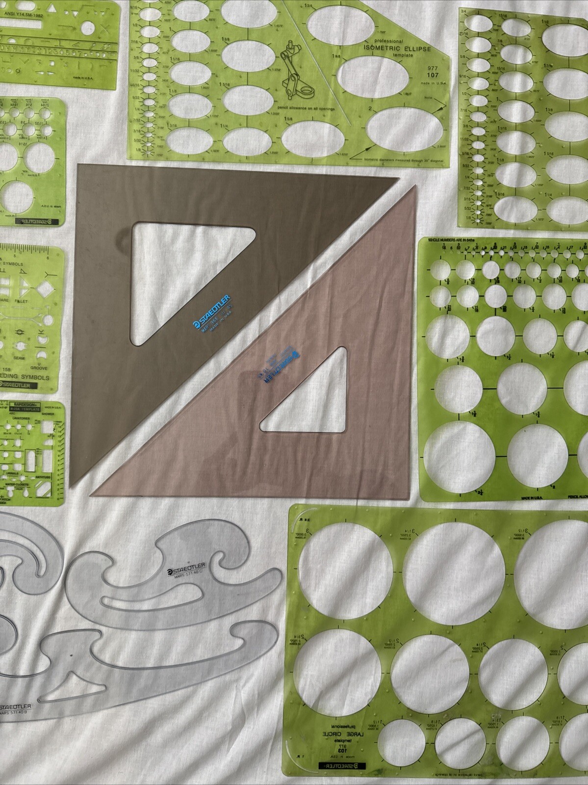 Lot 35 Drafting Templates Stencil Staedtler RapiDesign Westcott Sliding Triangle