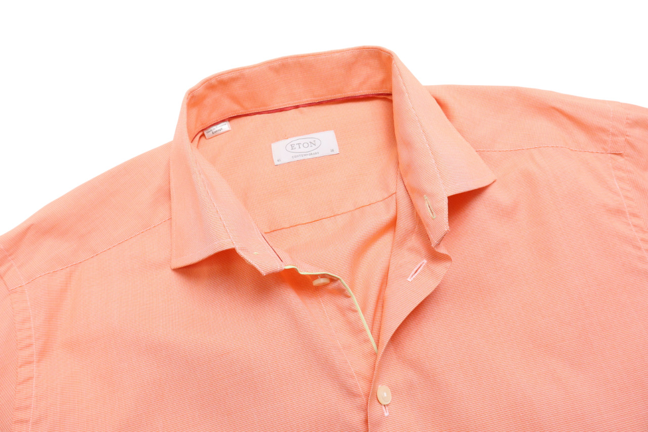 как выглядит ETON Contemporary Formal Shirt Mens UK 41 Cutaway Neck Patterned Orange фото