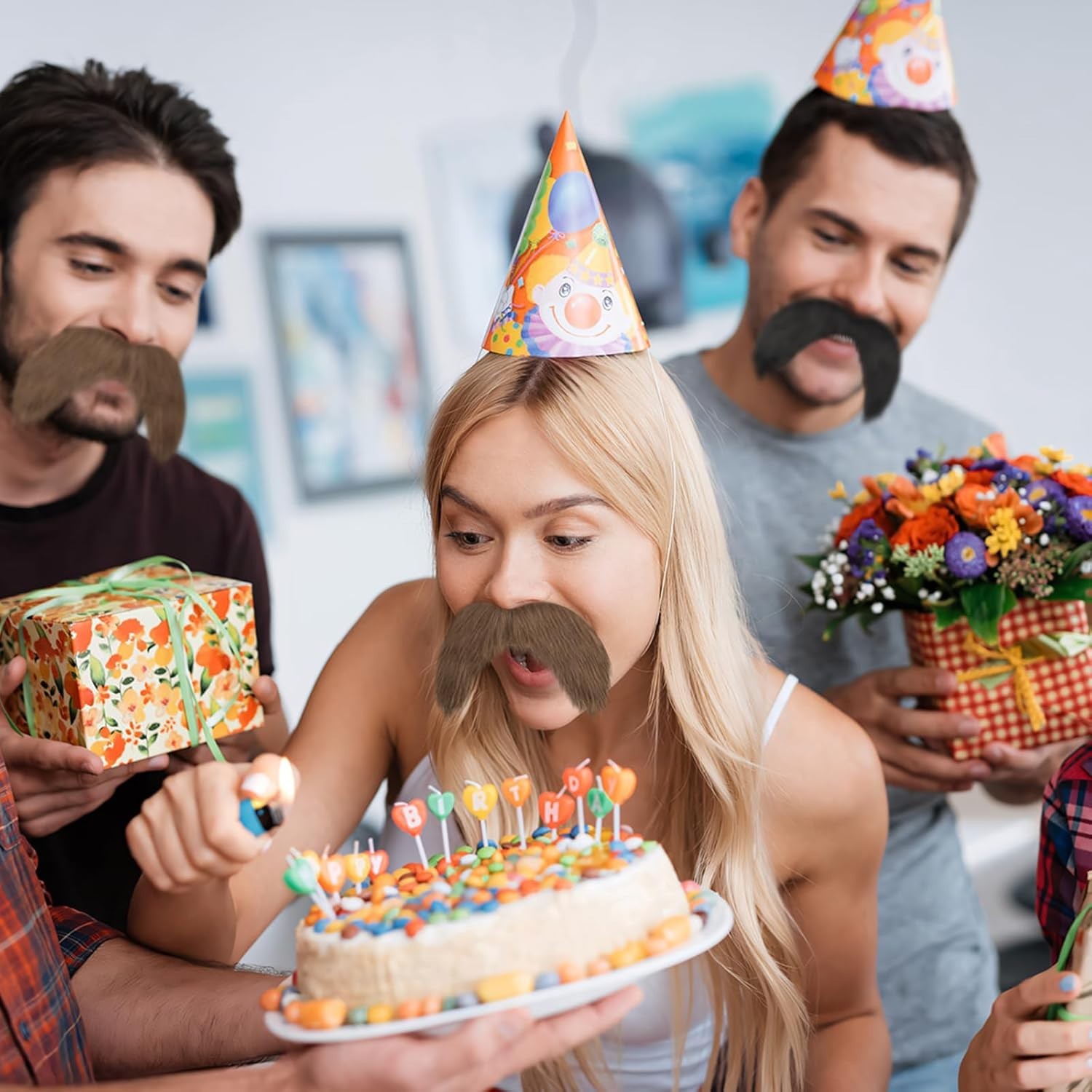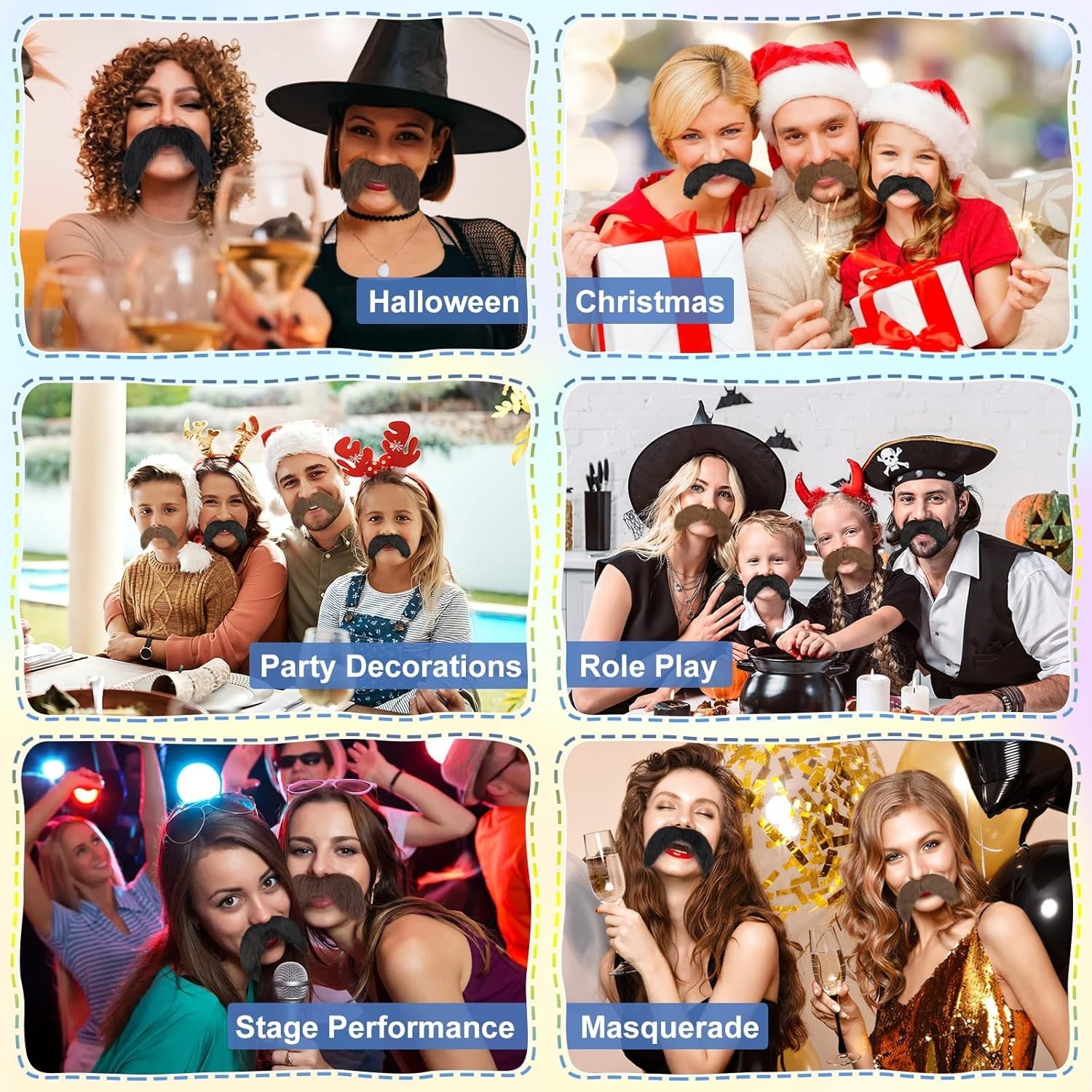 как выглядит 2pcs black fake mustache, self adhesive fake beard, novelty realistic facial ... фото