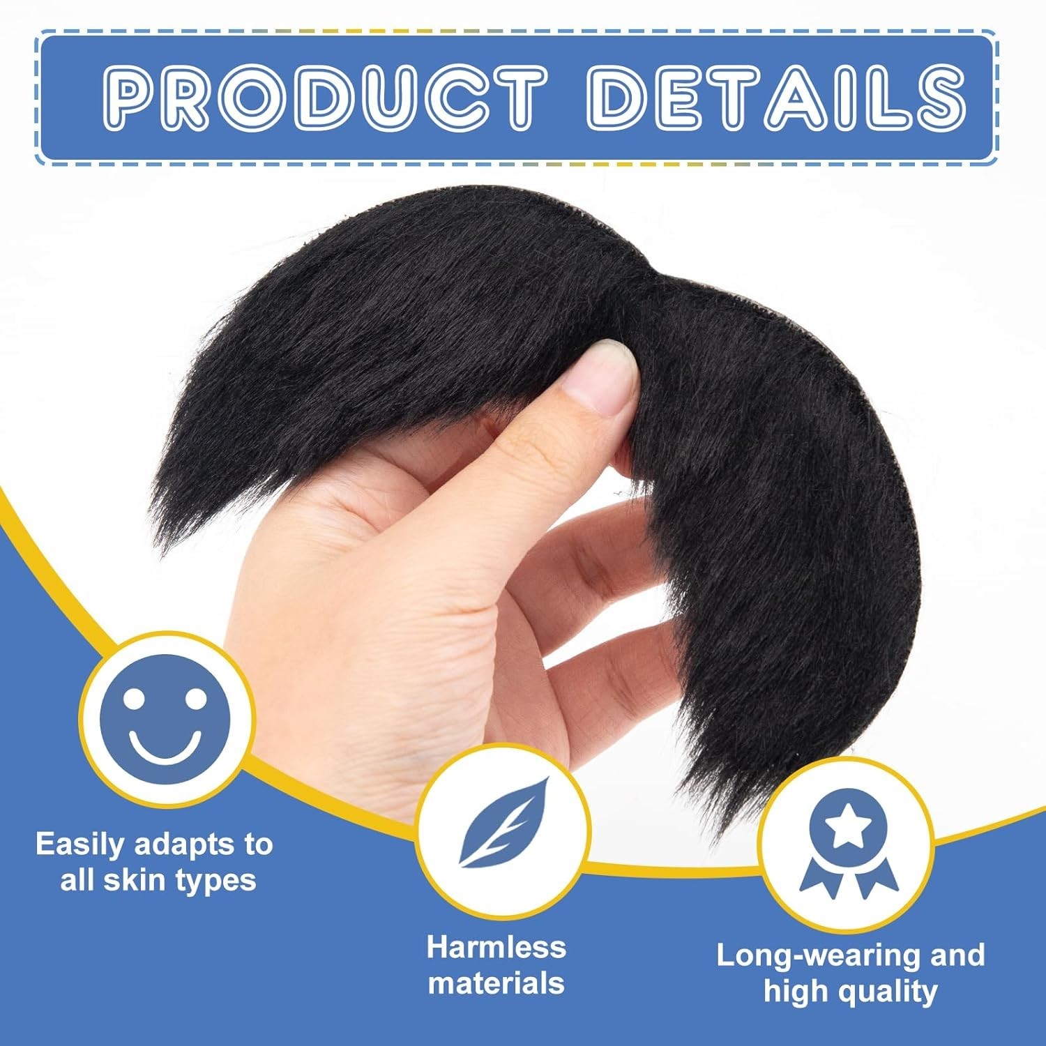 2pcs black fake mustache, self adhesive fake beard, novelty realistic facial ...