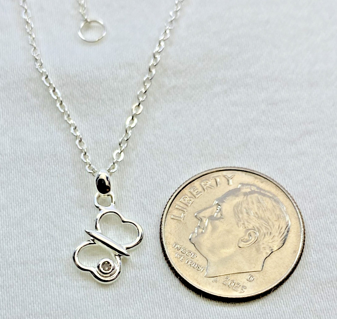 925 Sterling Silver Kit Heath Signed My 1st Diamond Butterfly Necklace, 14 NOS