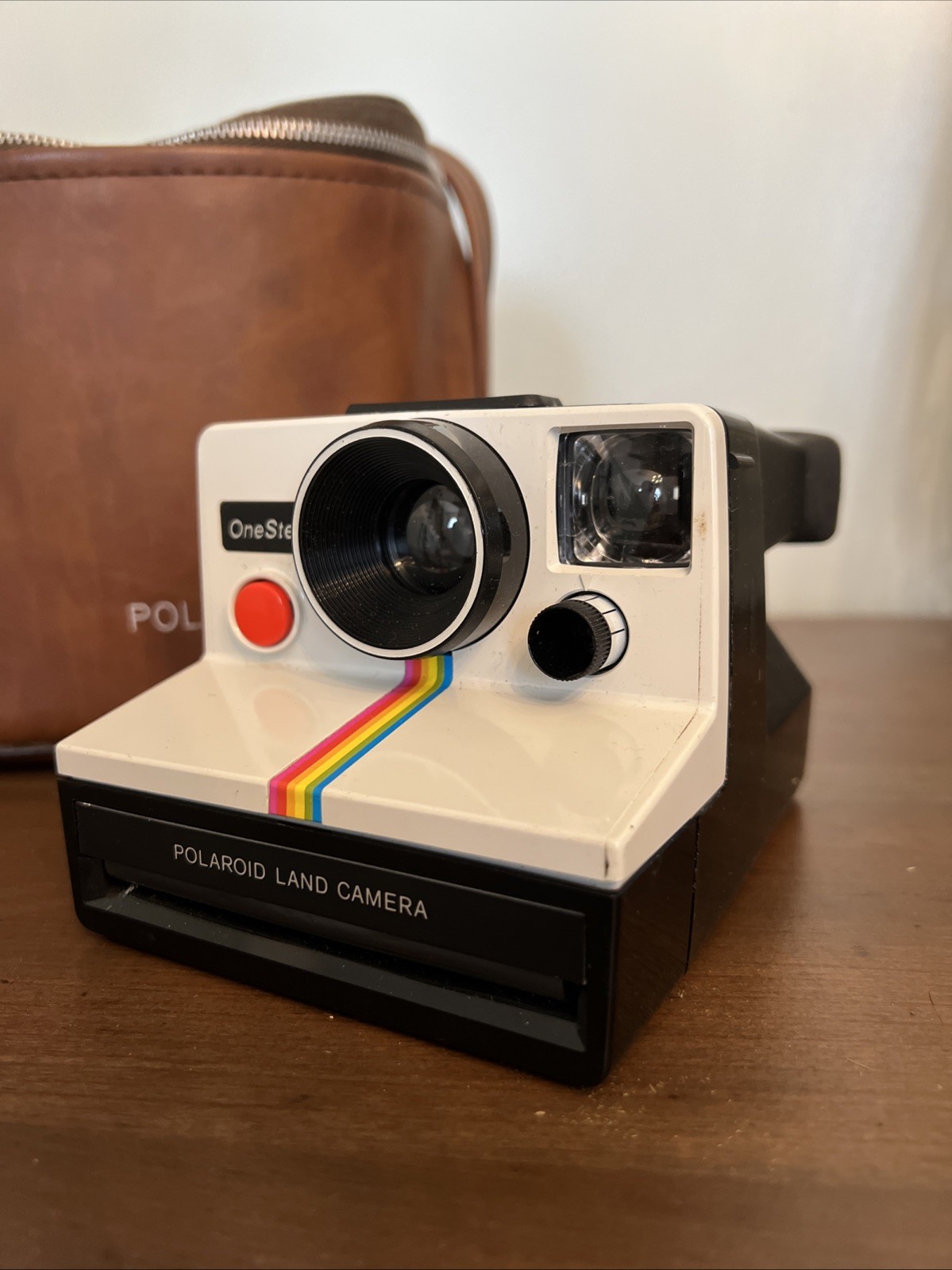 как выглядит Vintage Polaroid One Step Land Camera Rainbow Stripe W/ Leather Carrying Case фото
