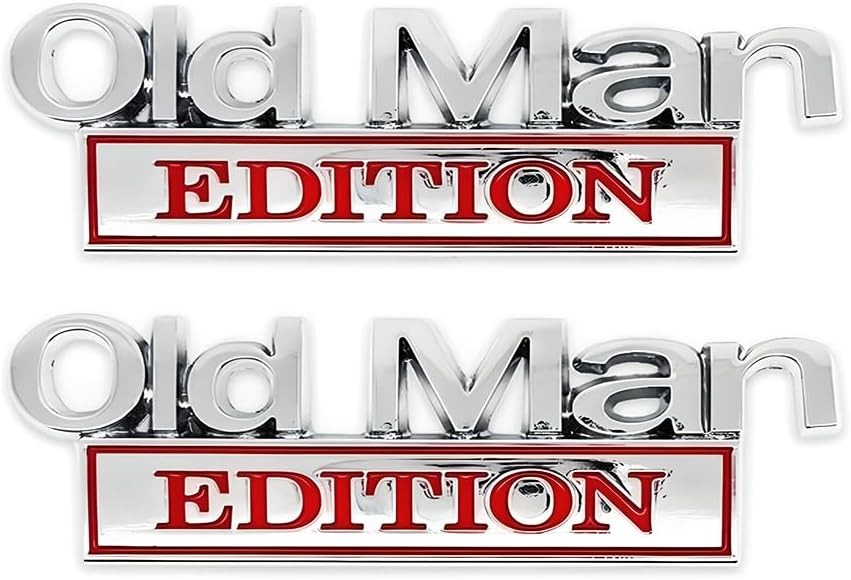 2pcs Metal Old Man Edition Emblem 3D Badge Fit for Universal Silver Red