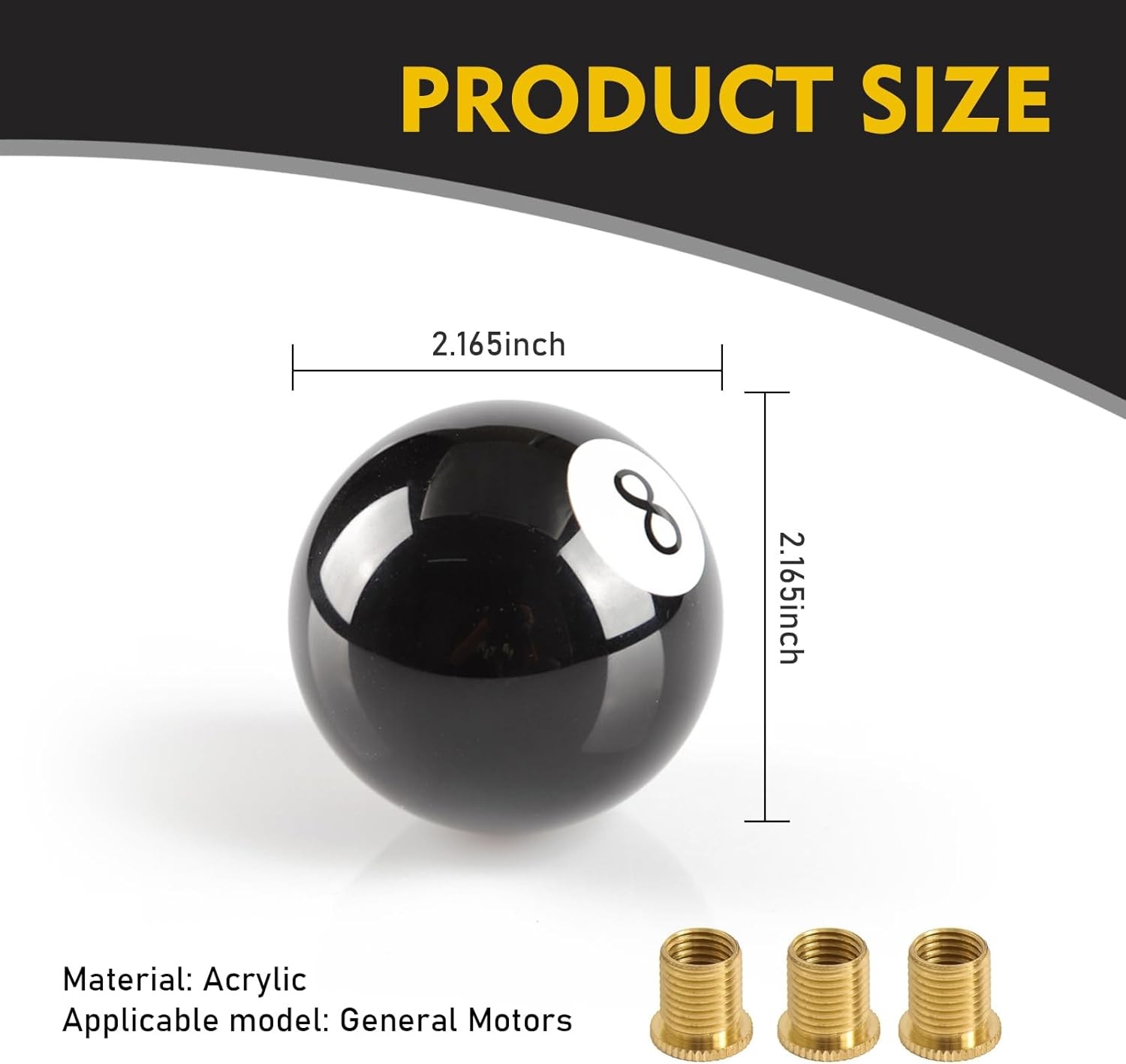 1 PC 8 Billiard Ball Shape Manual Transmission Shift Knob, 2.165 x 2.165 C