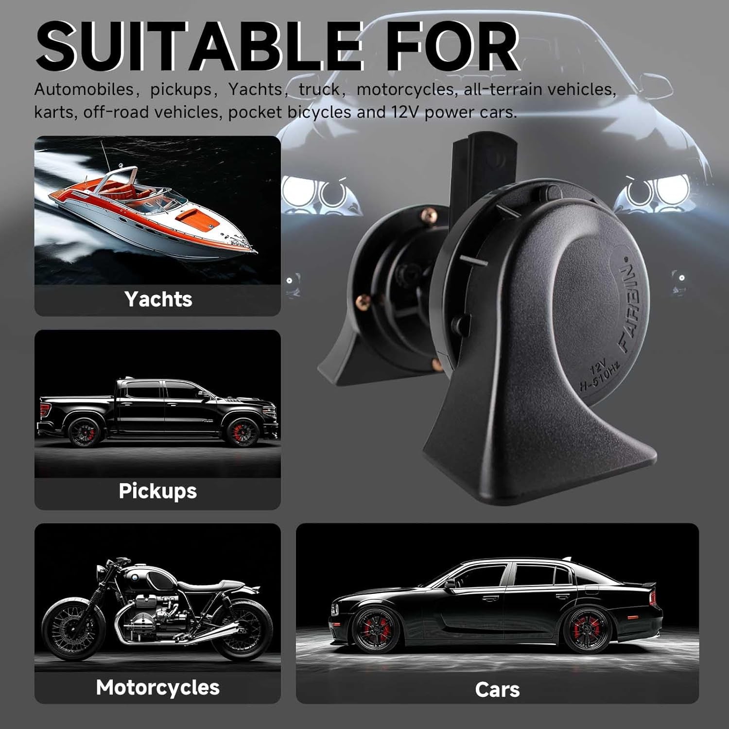 Car Horn 12V Compact Motorcycle Horn Super Loud High Low Dual Tone Dual horn