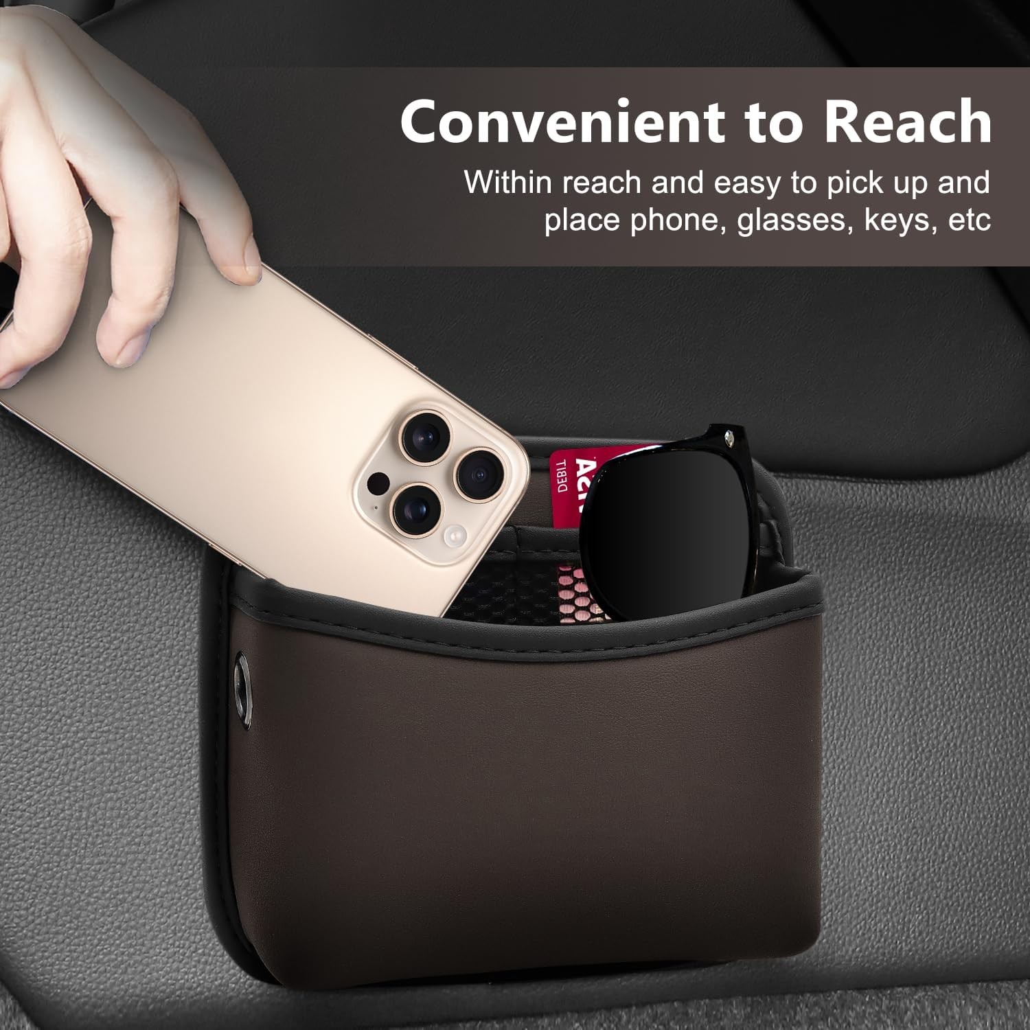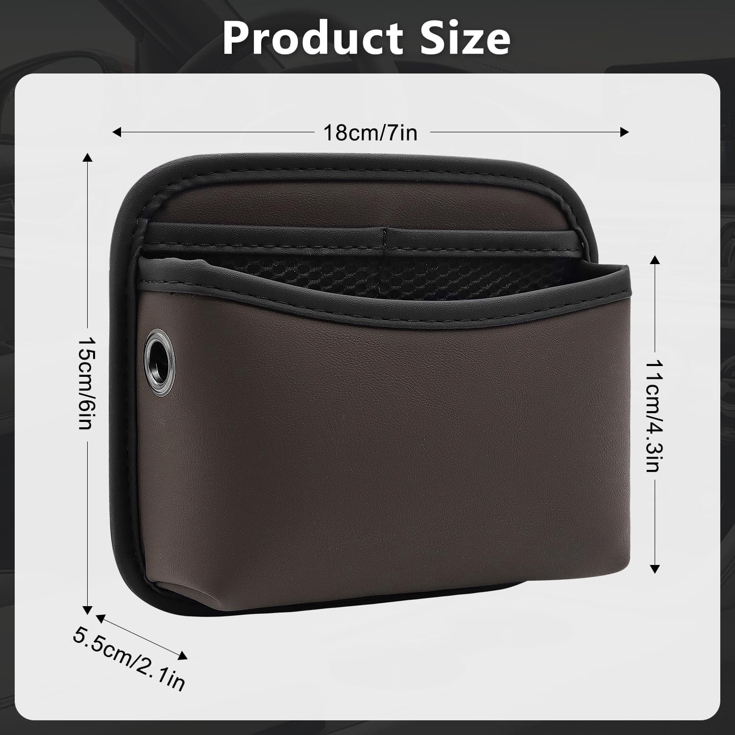 Side Storage Pocket, Small Car Seat Organizers PU Leather Car Brown 2 Pack