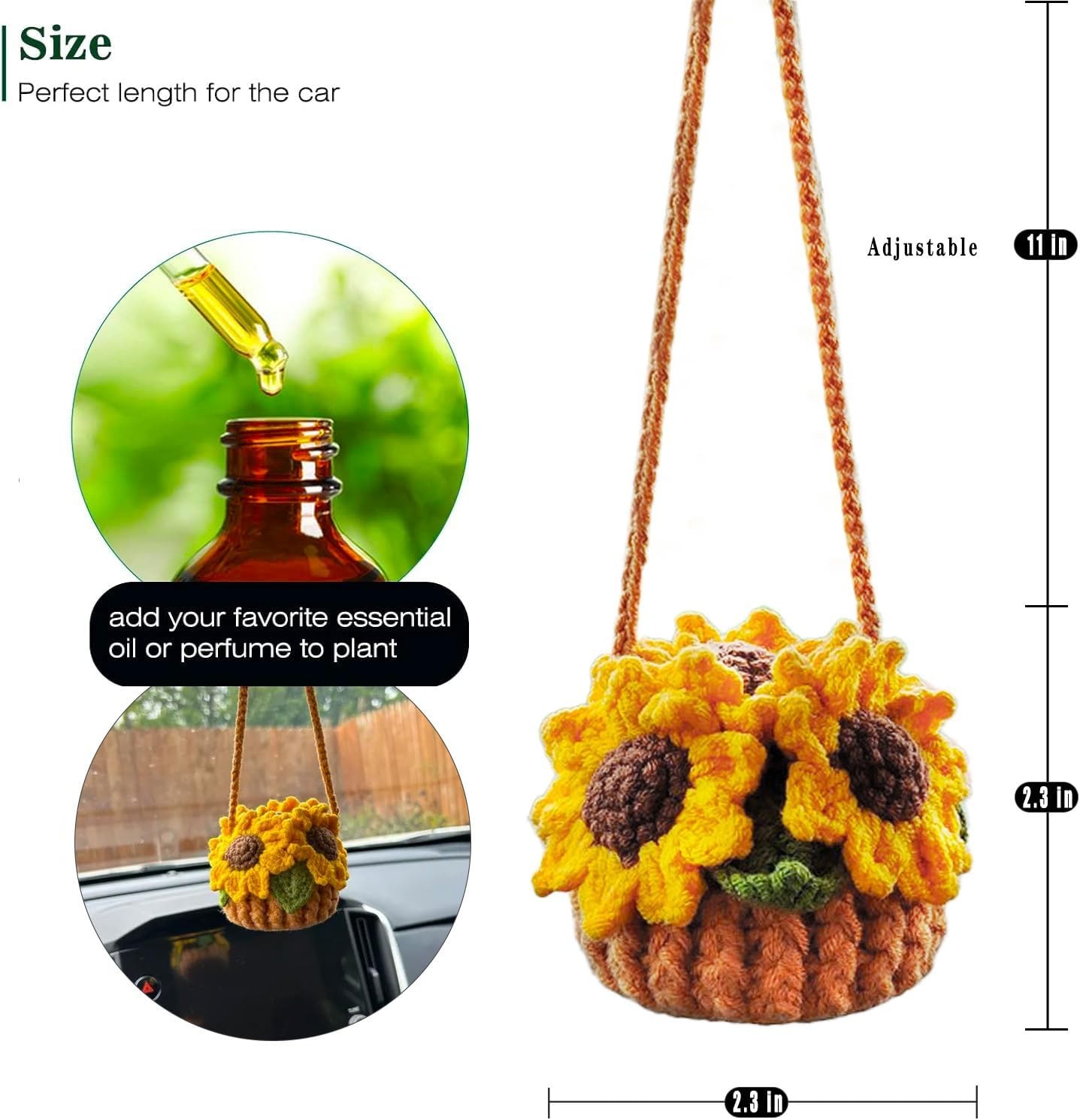 Cute Crochet Plant for Car Rear View Mirror, Handmade Car Sunflower Plant