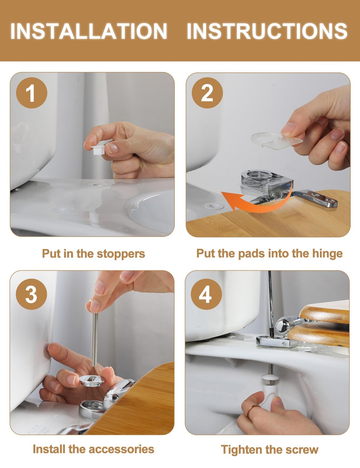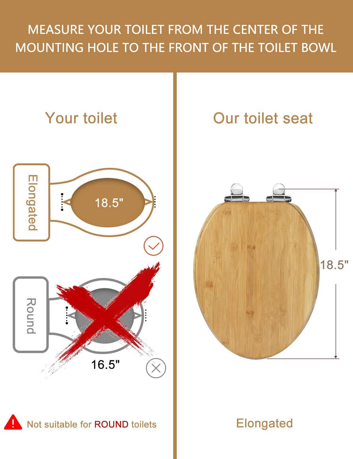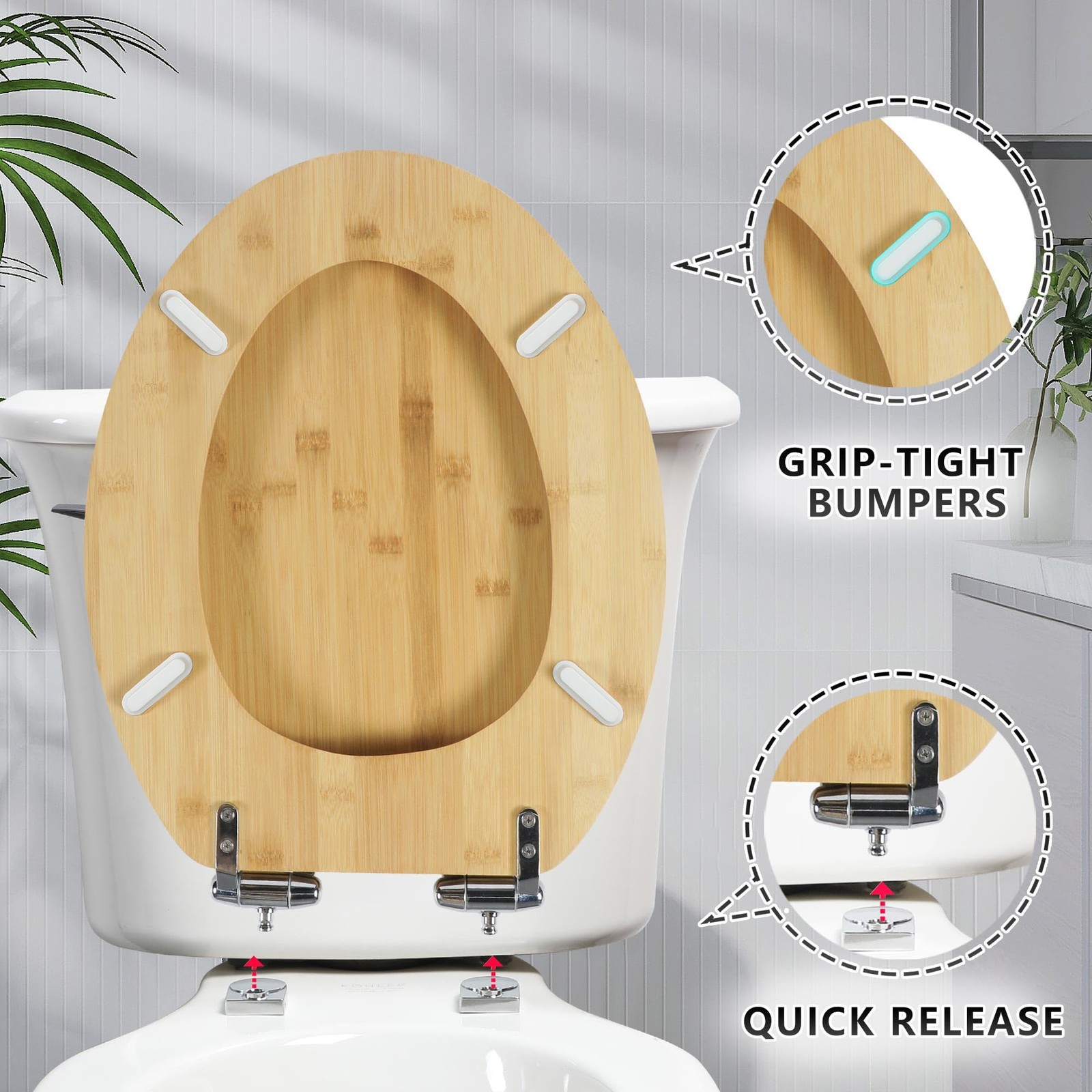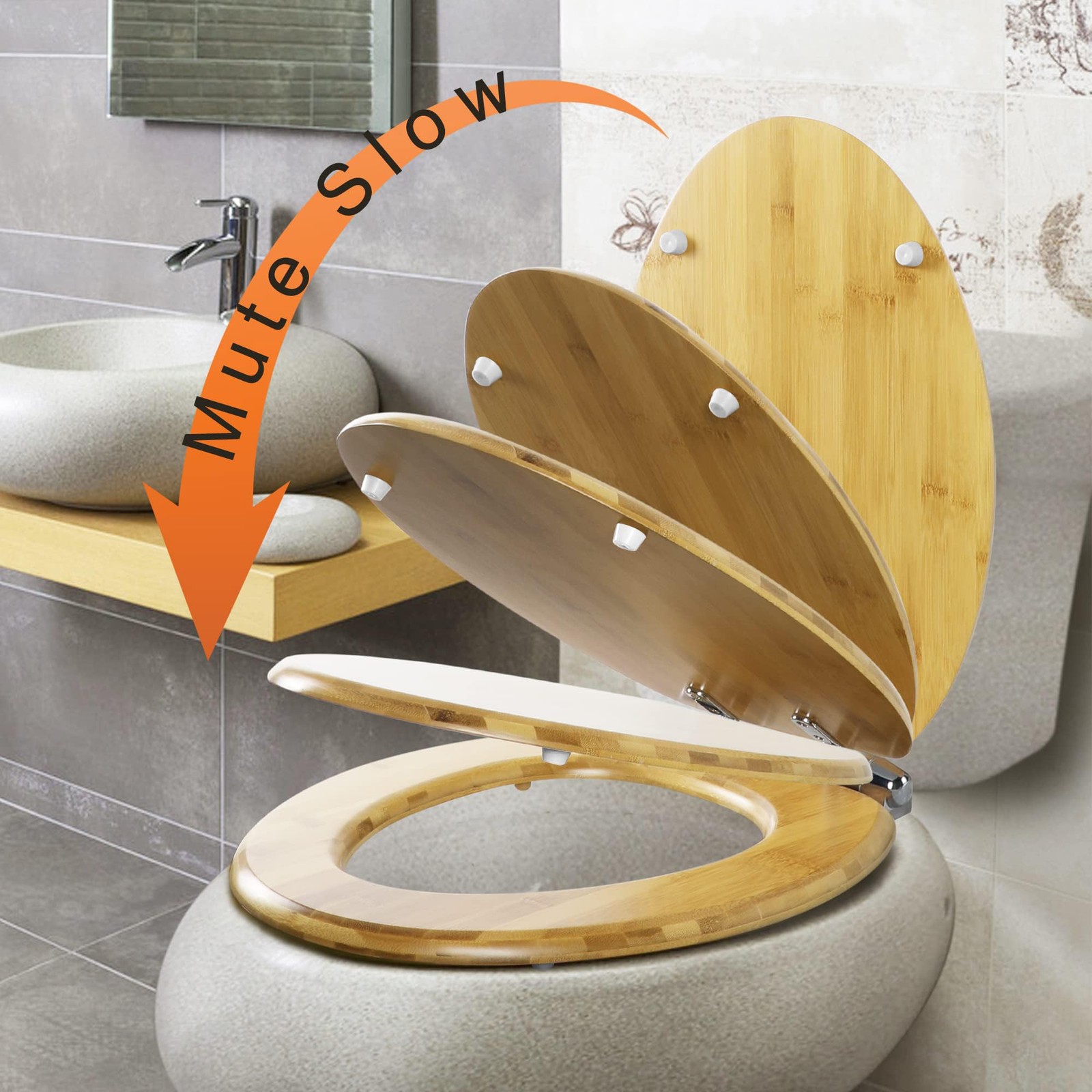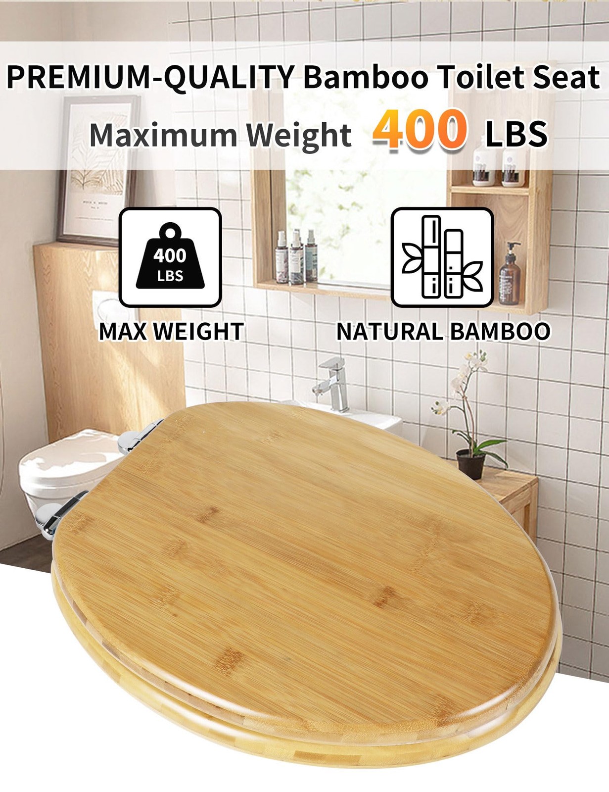 Elongated Bamboo Toilet Seat with Lid Quick Release Slow Close Zinc Alloy Str...