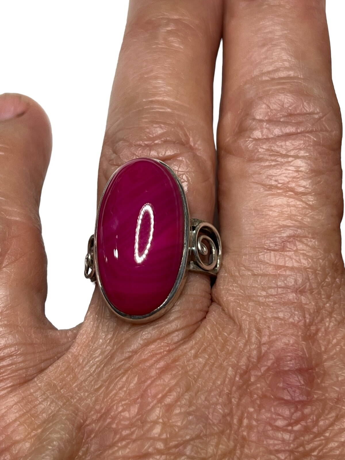 Large Oval Red Lace Agate Ring Sterling Silver Size 9 R11022