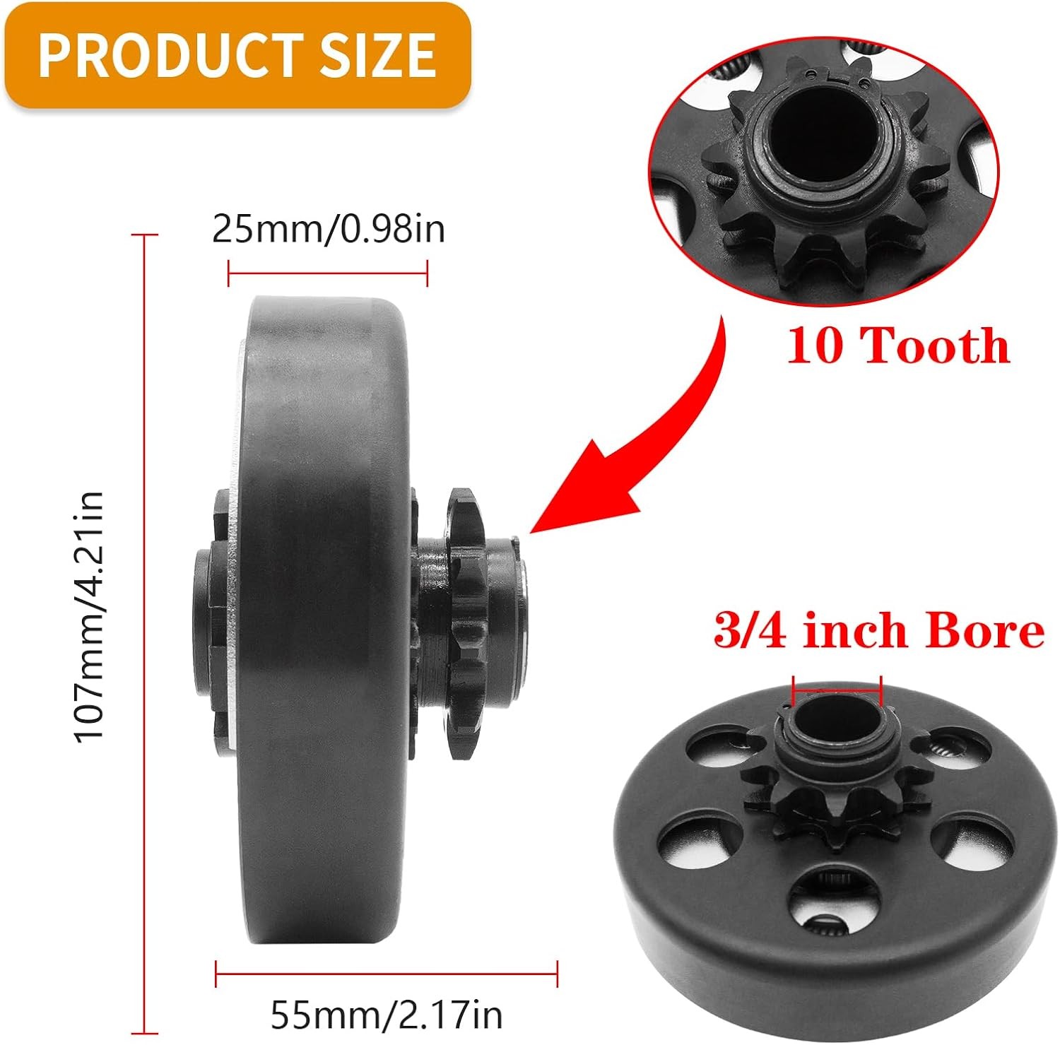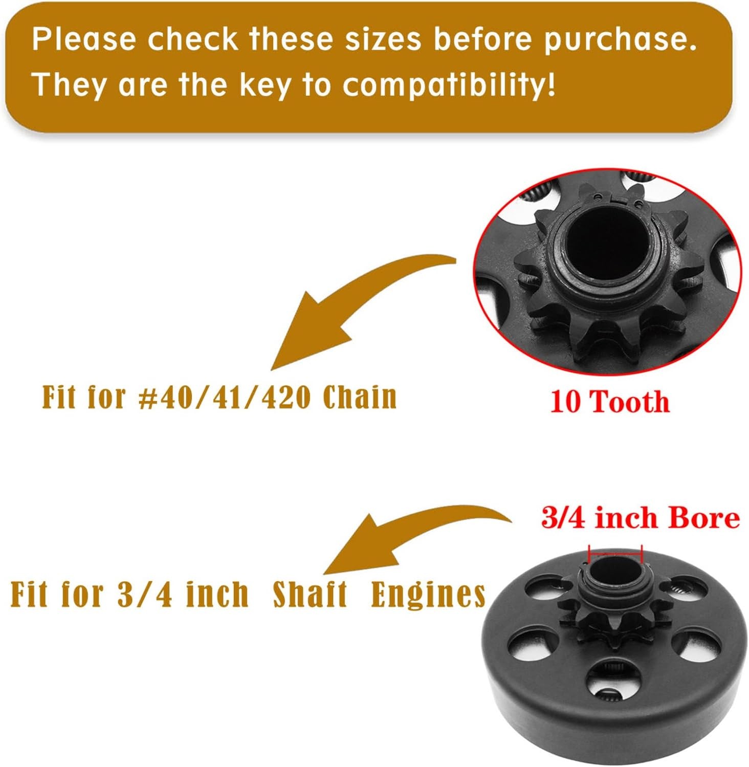 Centrifugal Clutch, Clutch 3/4 Bore 10T with 40 41 420 Chain for Mini Bike, Clu