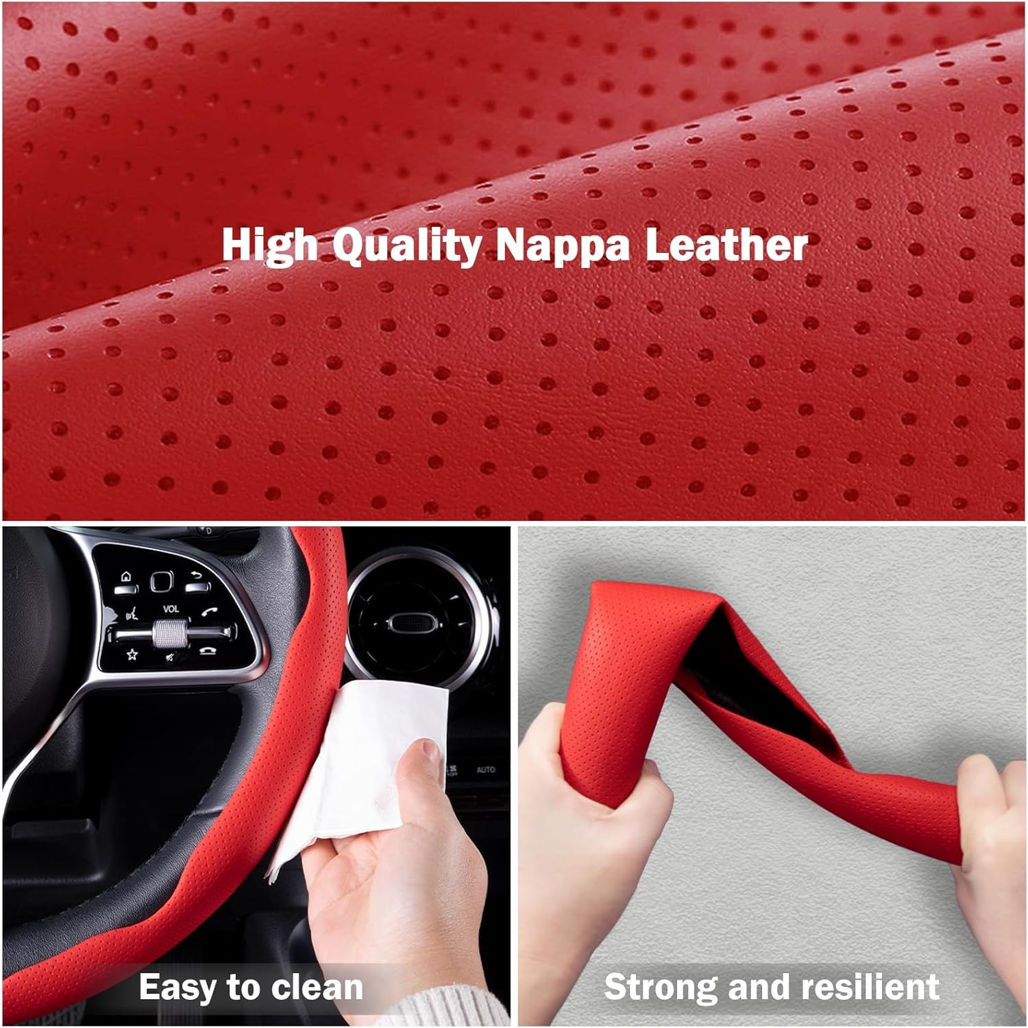 • Car Steering Wheel Cover for Men Women, Ultra-Thin Non-Slip Breathable-Red
