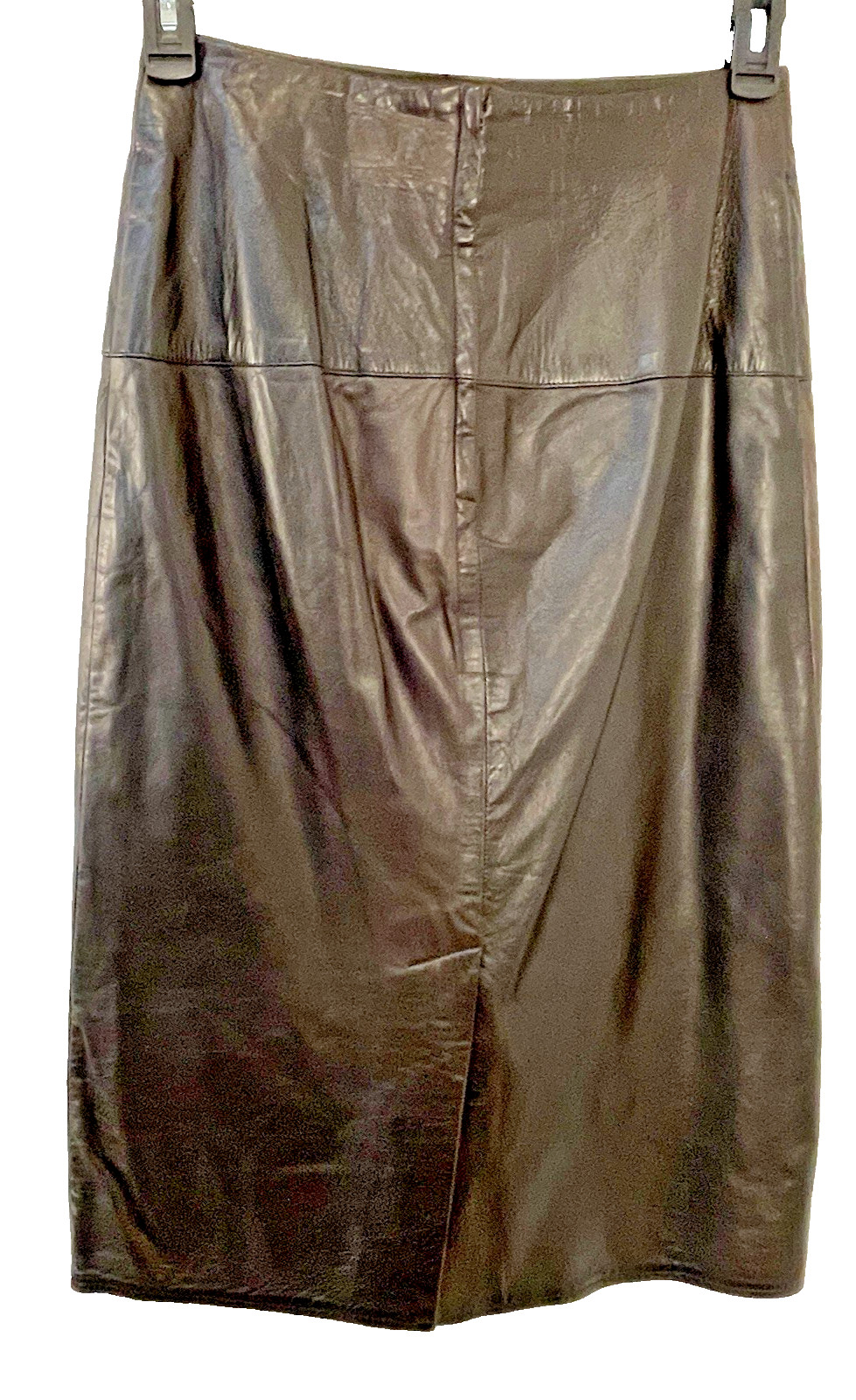 Vakko Vintage Brown Leather Midi Length Pencil Skirt Waist 30 Office Cowgirl