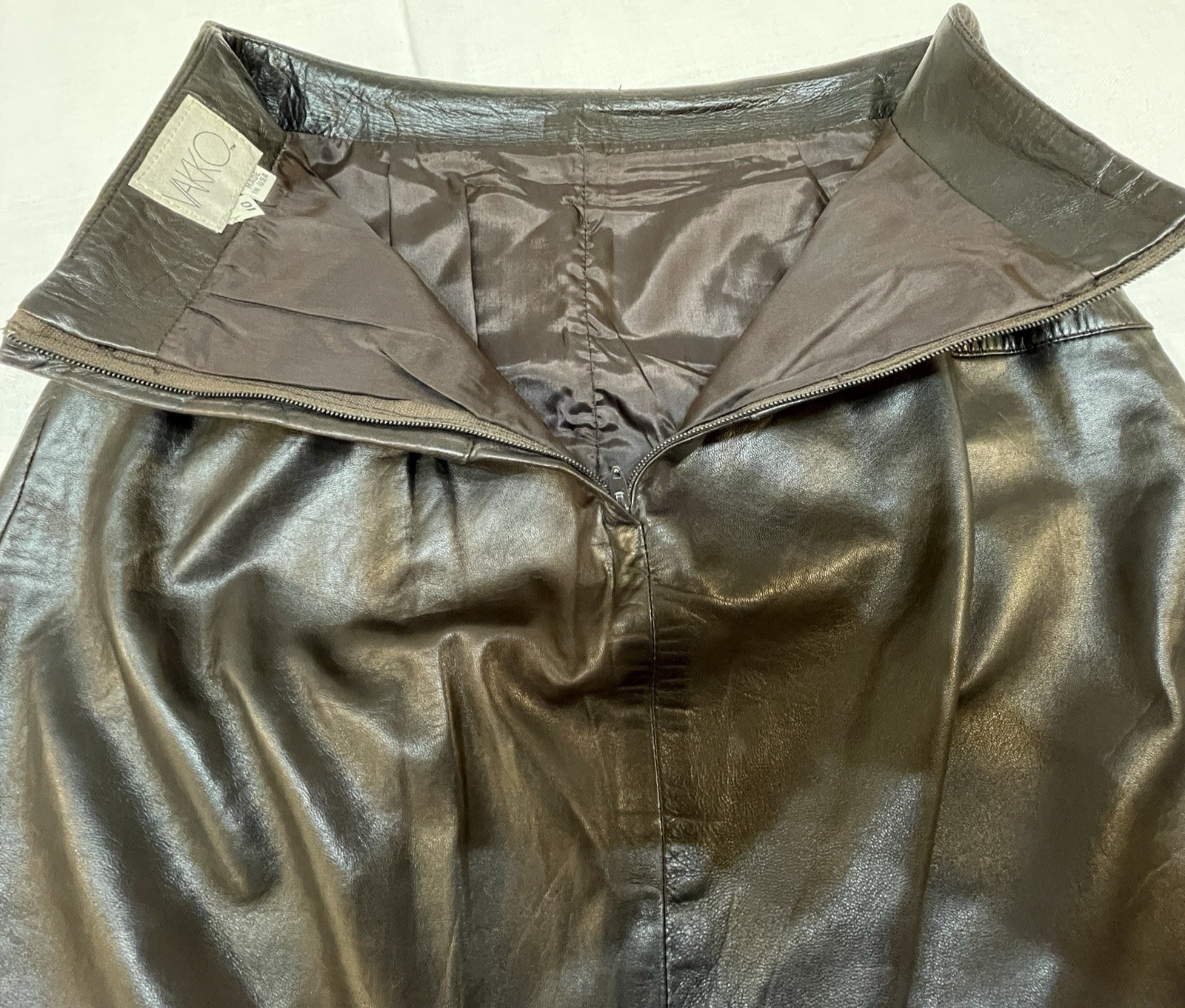 как выглядит Vakko Vintage Brown Leather Midi Length Pencil Skirt Waist 30" Office Cowgirl фото
