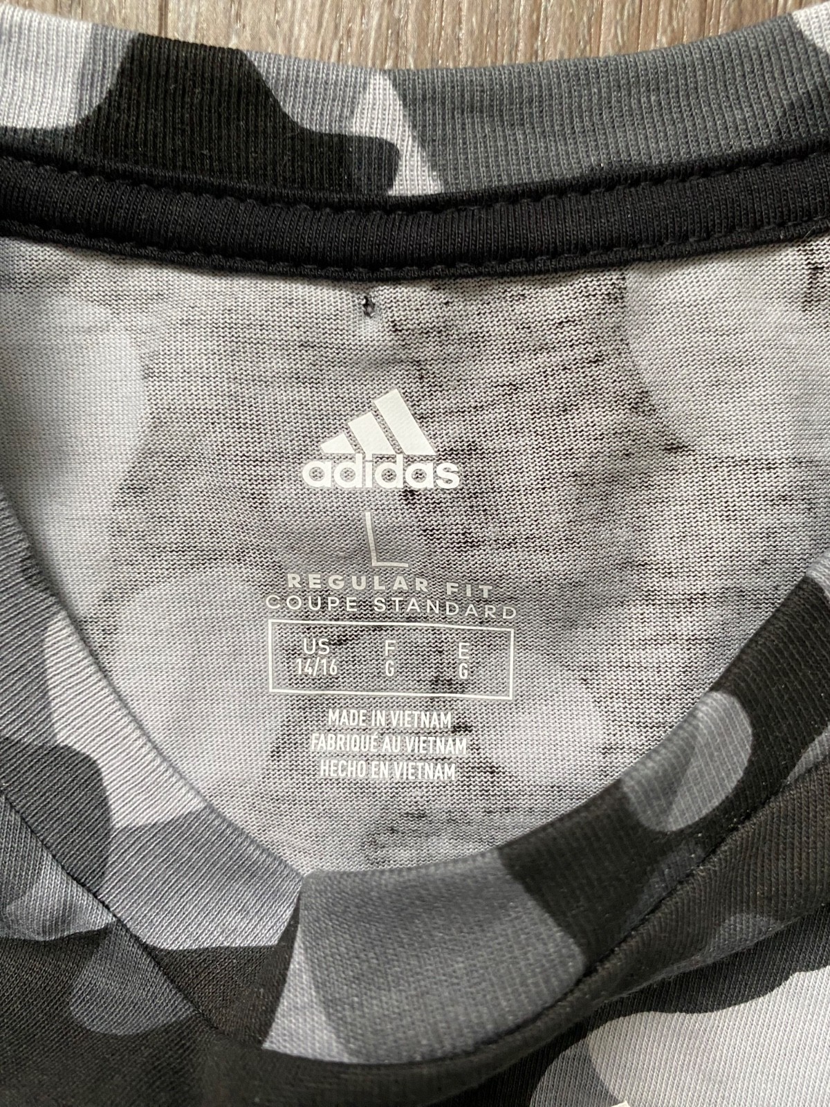 ADIDAS nwt Boys Core Black Camo Print Tee Shirt Boy's size LARGE 14/16 s/s NEW