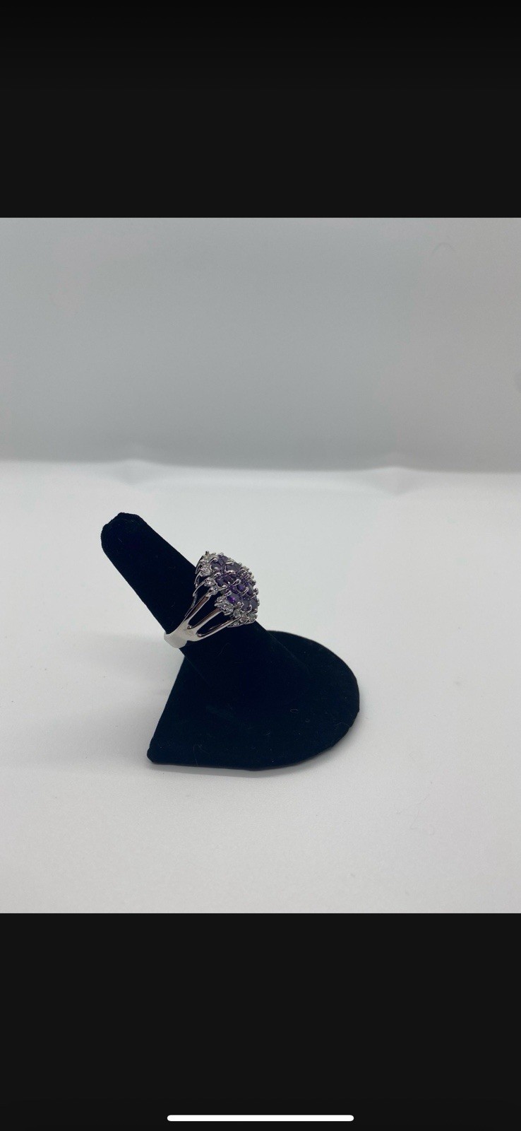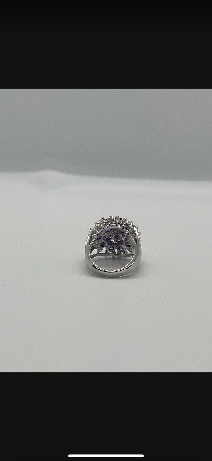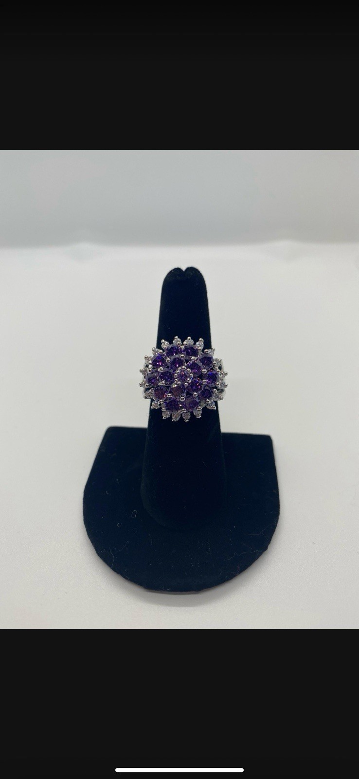 Mystical Purple Amethyst Gem With Cubic Zirconia Stone Silver Flower Ring Size 7