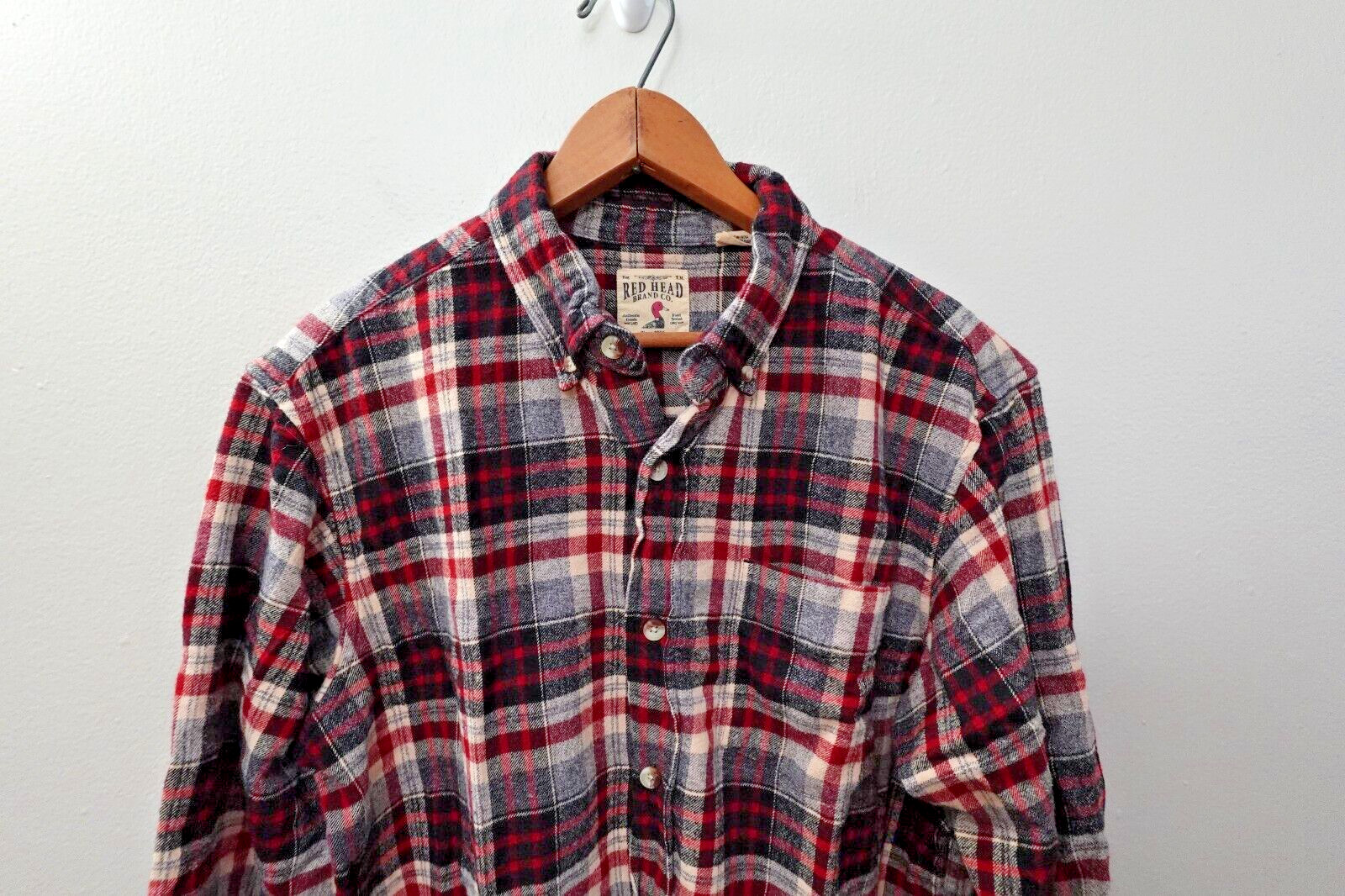 Men s Red Plaid Flannel Shirt Size Large Long Sleeve Button Down Casual Outdoor