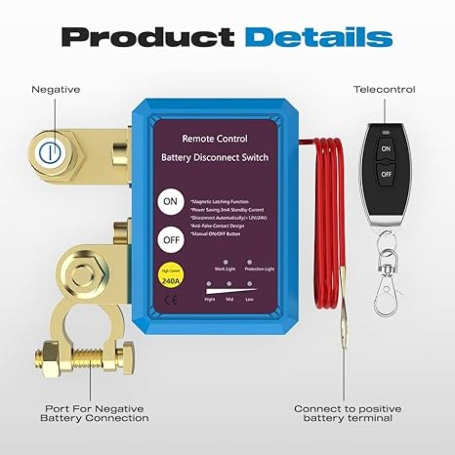 12V 240A Remote Battery Disconnect Switch Anti Theft Automatic Cut/Shut Off Swit