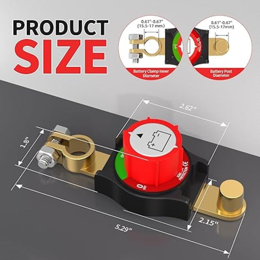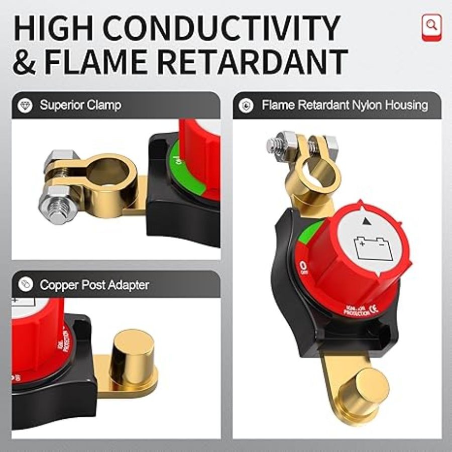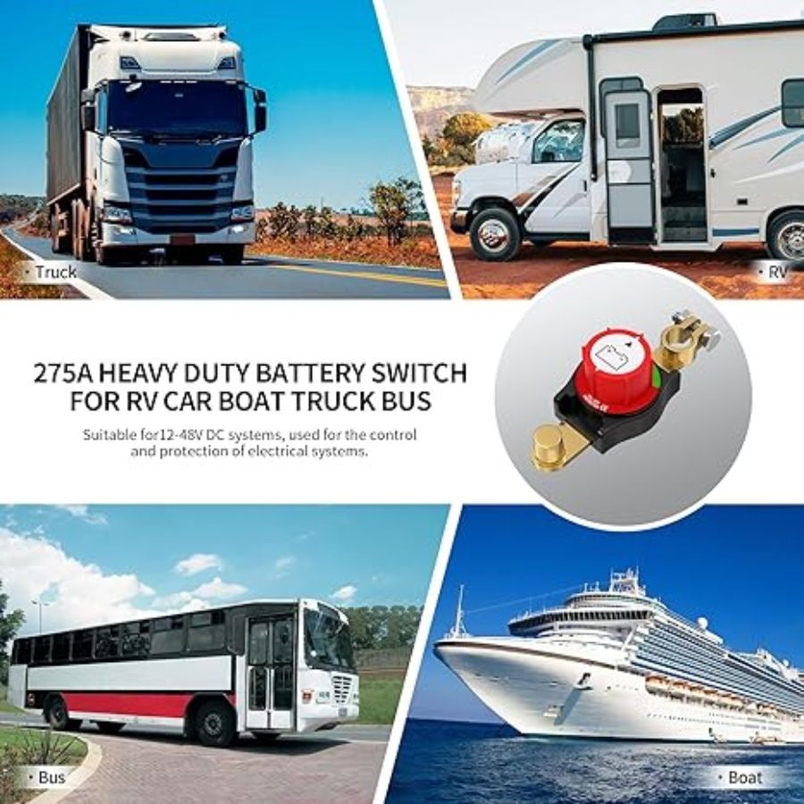 Battery Disconnect Switch 275A Top Post Car Battery Cut Off Switch 12-48V -red