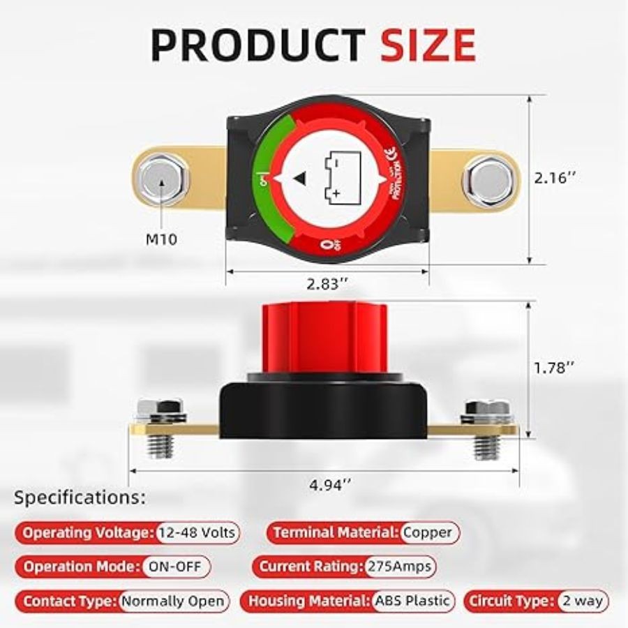 Side Post Battery Disconnect Switch 12V-48V 275A -On-Off Side Post 275A