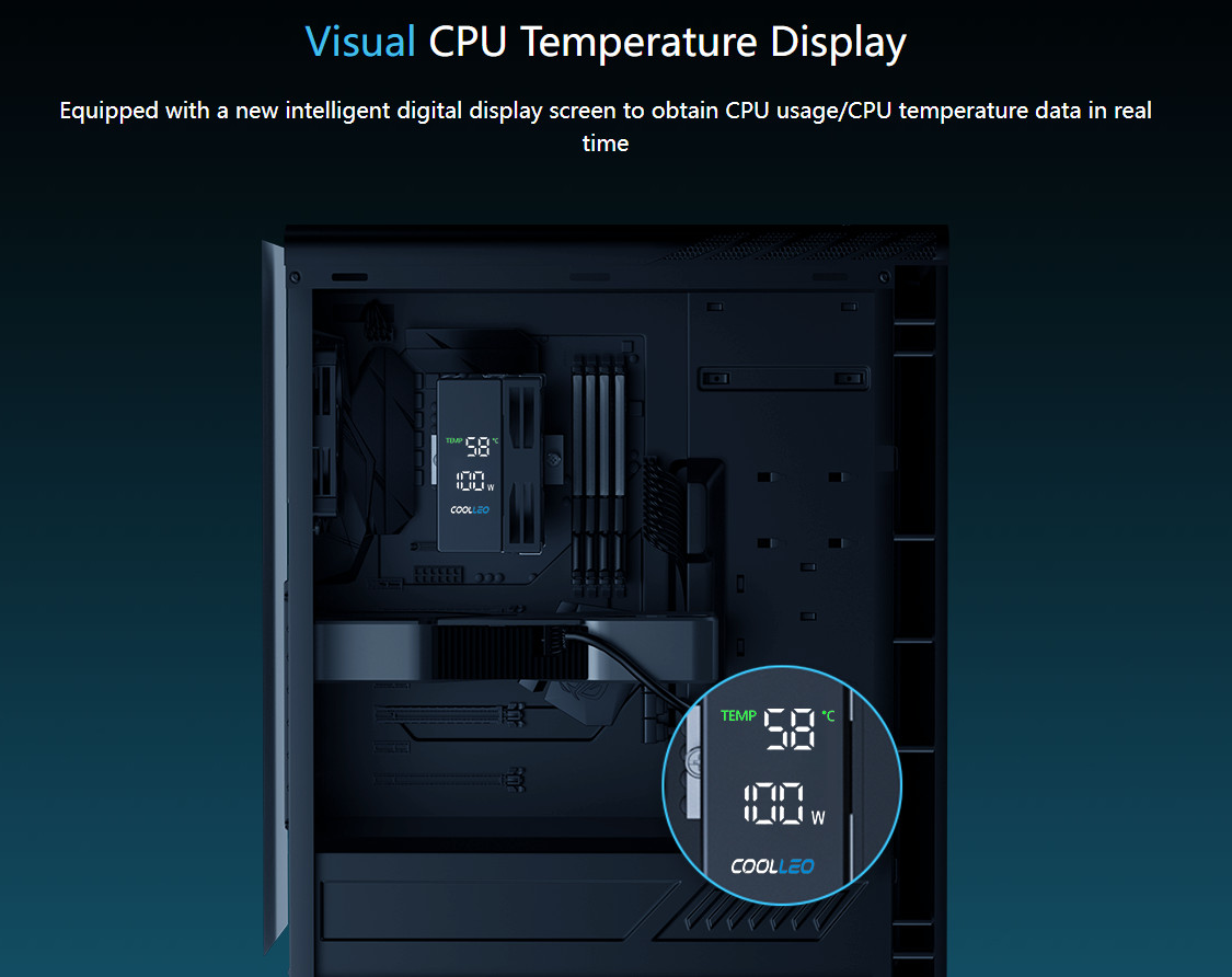 как выглядит Coolleo B40 DIG CPU Air Cooler DIGITAL LCD 120mm CL-B40-DIG AM4/AM5 Intel LGA фото