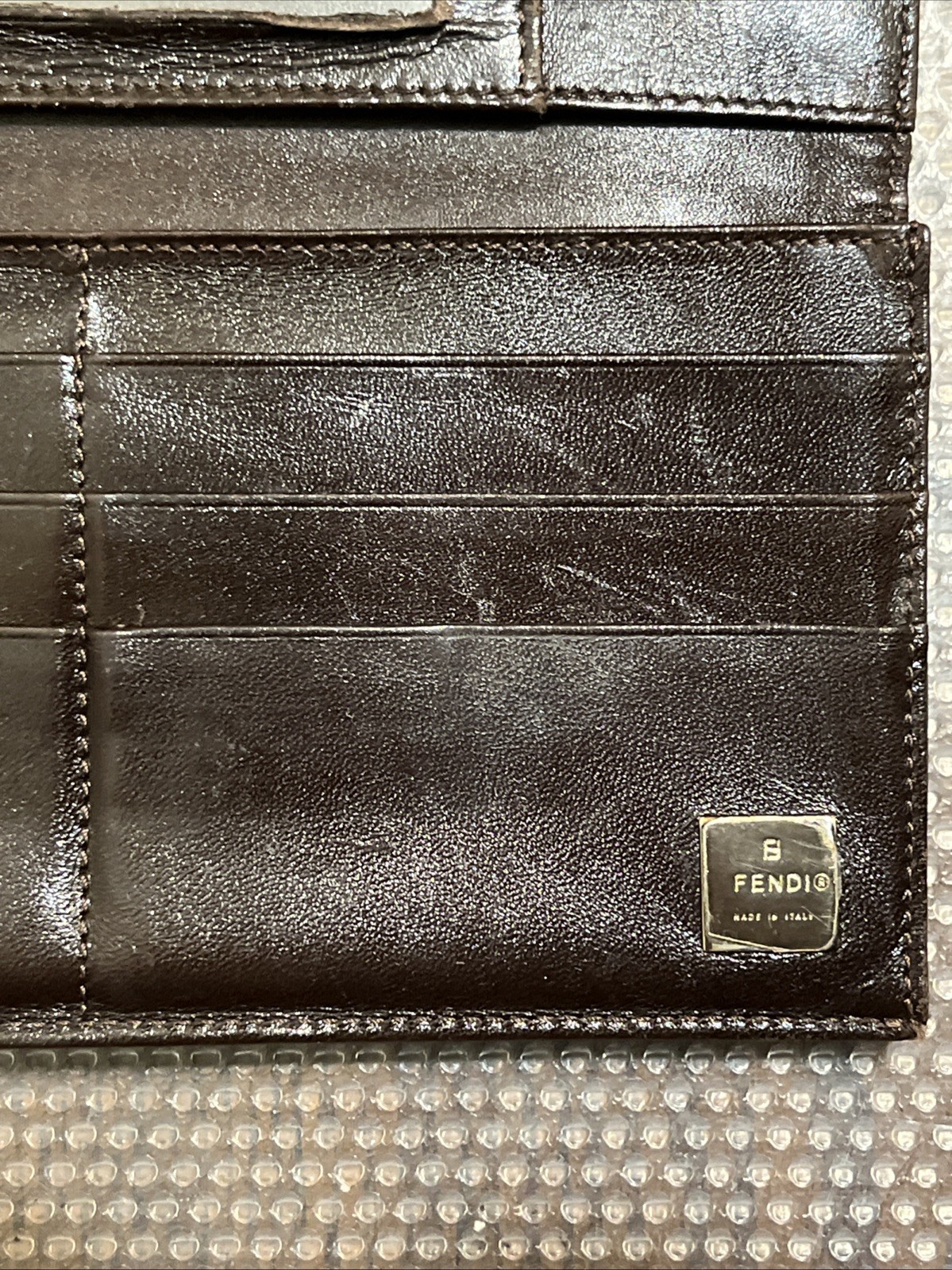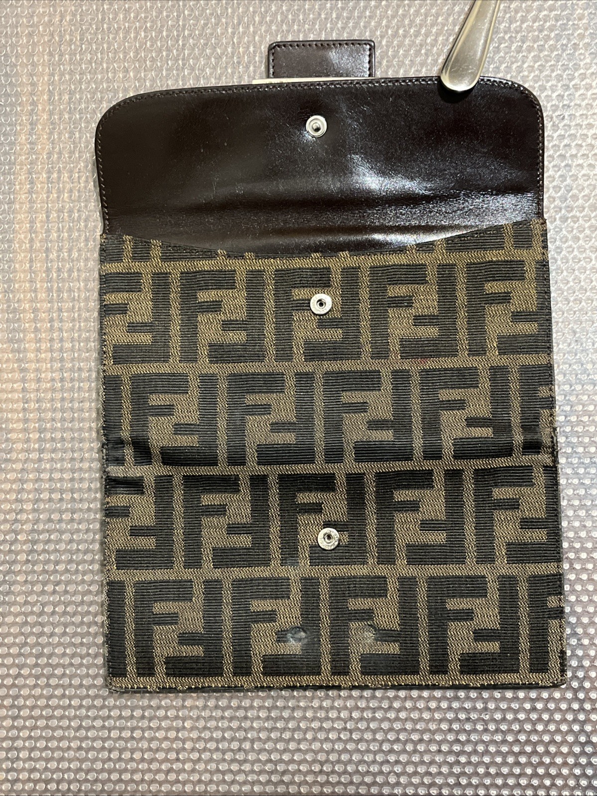 как выглядит FENDI Zucca Canvas Leather Bifold Long Wallet Khaki фото