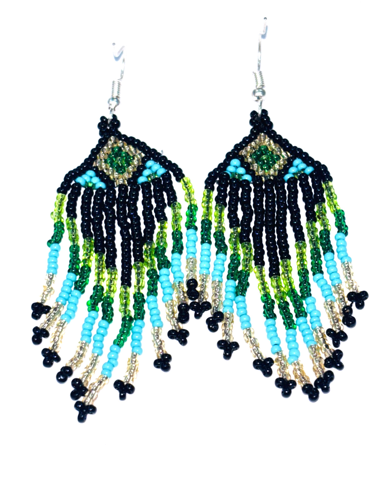 Handmade Green Seed Bead Necklace Earrings Set Boho American Style Jewelry