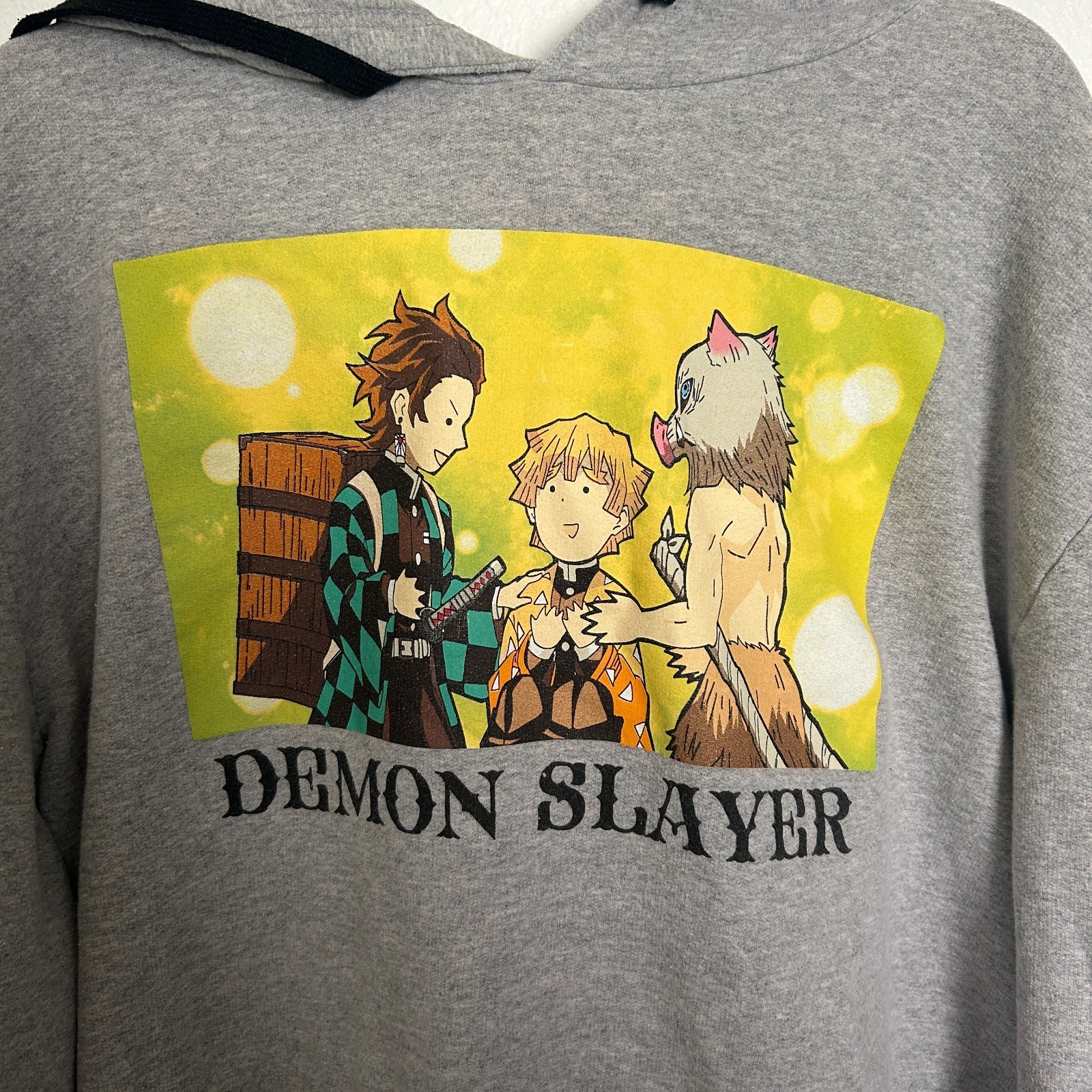 Trendy Anime Demon Slayer Grey Graphic Hoodie Size L/XL