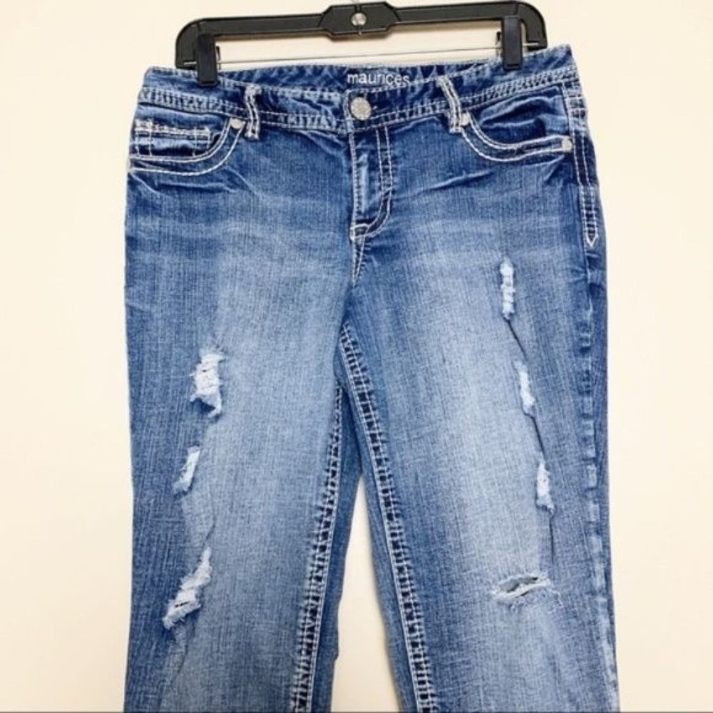 как выглядит Maurices Denim Mid Rise Light Wash Distressed Blue Jeans Size 7/8 Thread фото