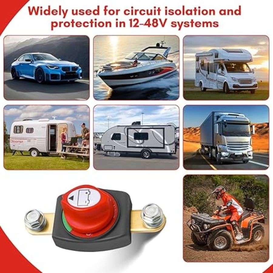 Side Post Battery Disconnect Switch 12V-48V, Battery Kill Switch -Side Post