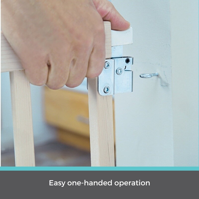 60-103 Extra-Wide Swing Baby Safety Gate Natural Wood for Doorways Hallways