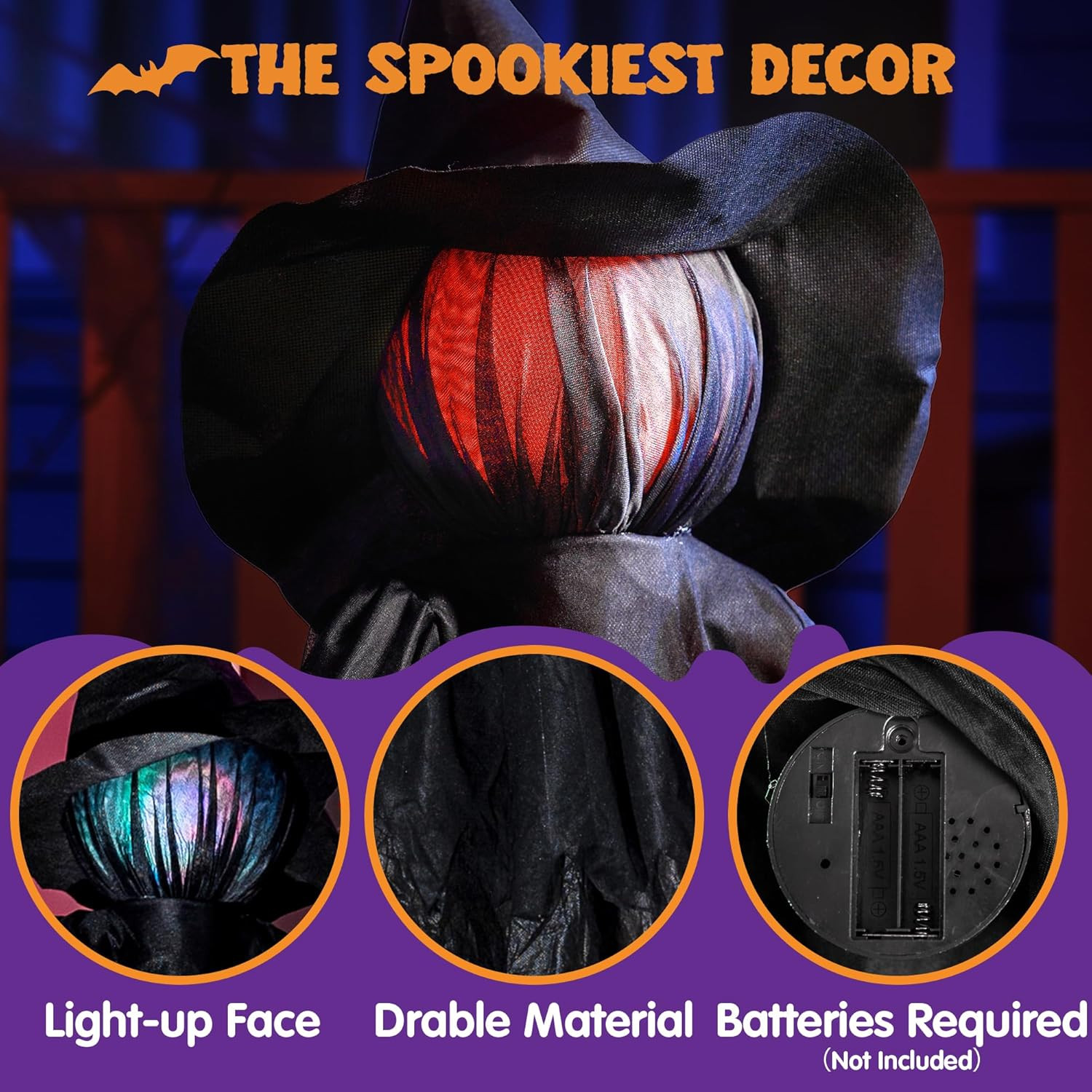 как выглядит Halloween Witch Decorations Outdoor Yard Stakes 3 Pack, 4.2 FT Multicolored Ligh фото