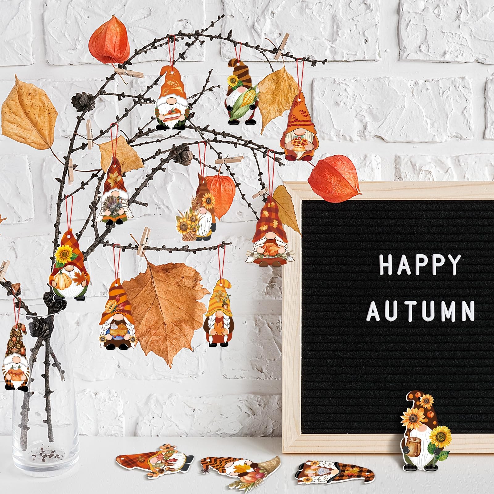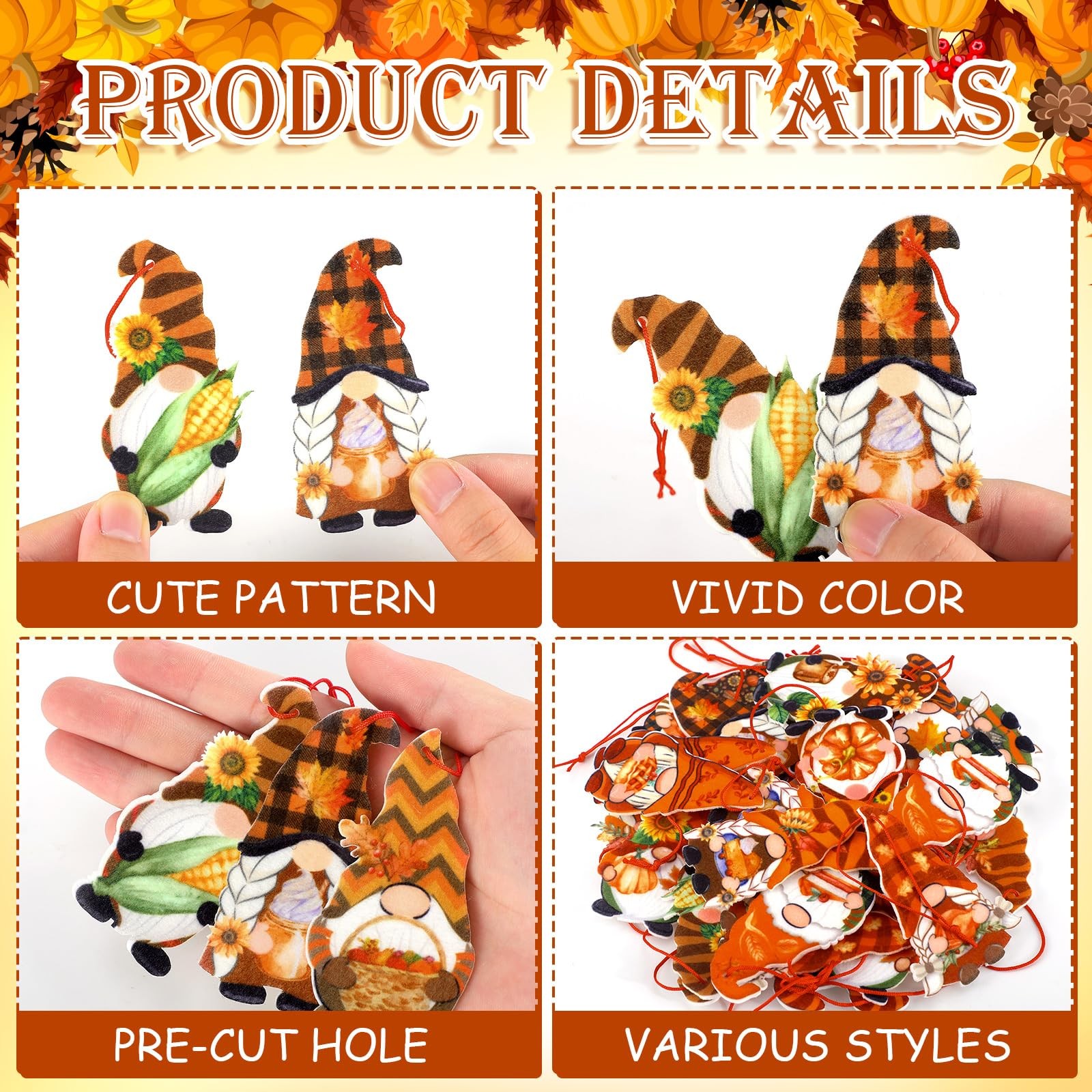 48 Pcs Fall Gnome Ornaments for Tree Felt Fall Thanksgiving Tree Decorations Aut