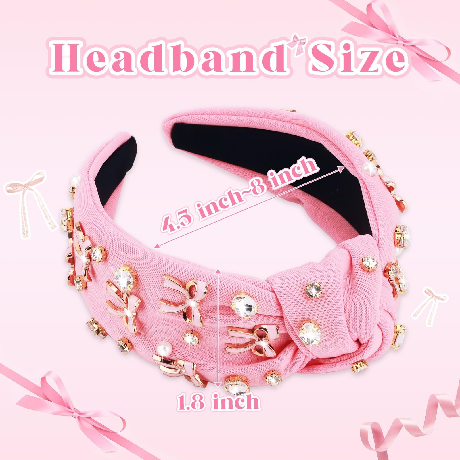Pink Bow Knotted Headband with Crystal Pearl Embellishment for Women Girls