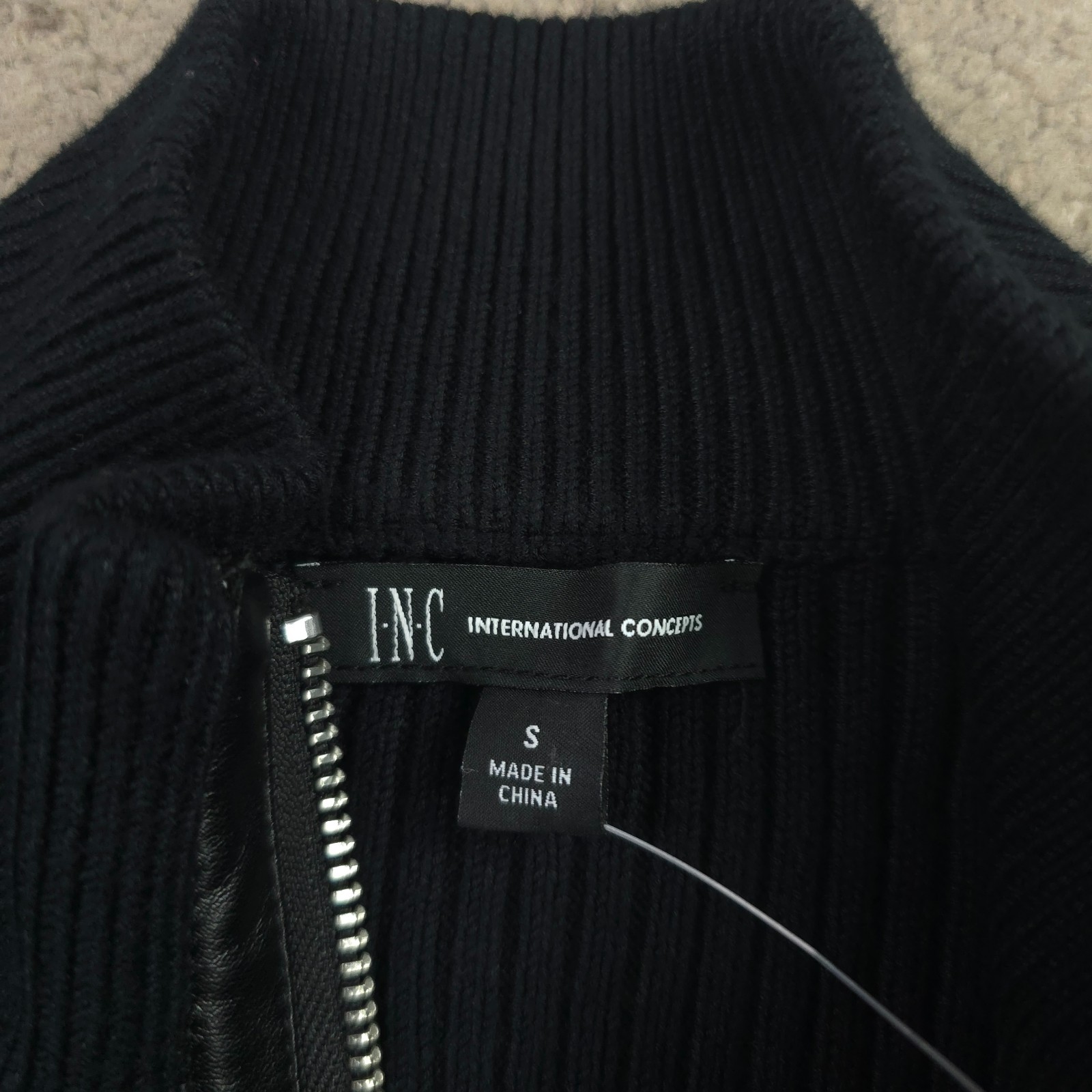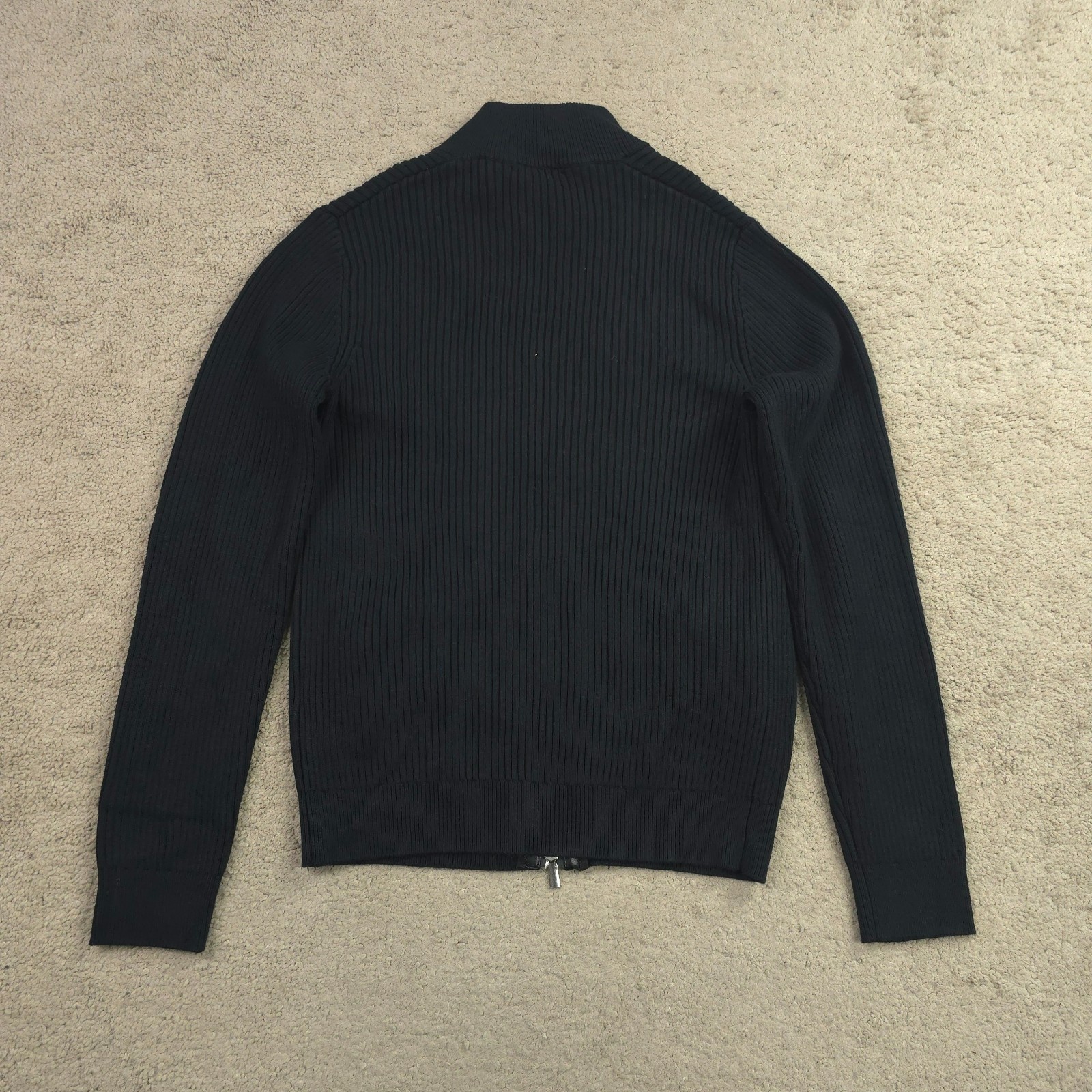 как выглядит INC International Concepts Mens Black Full-Zip Rib Knit Sweater Size Small фото