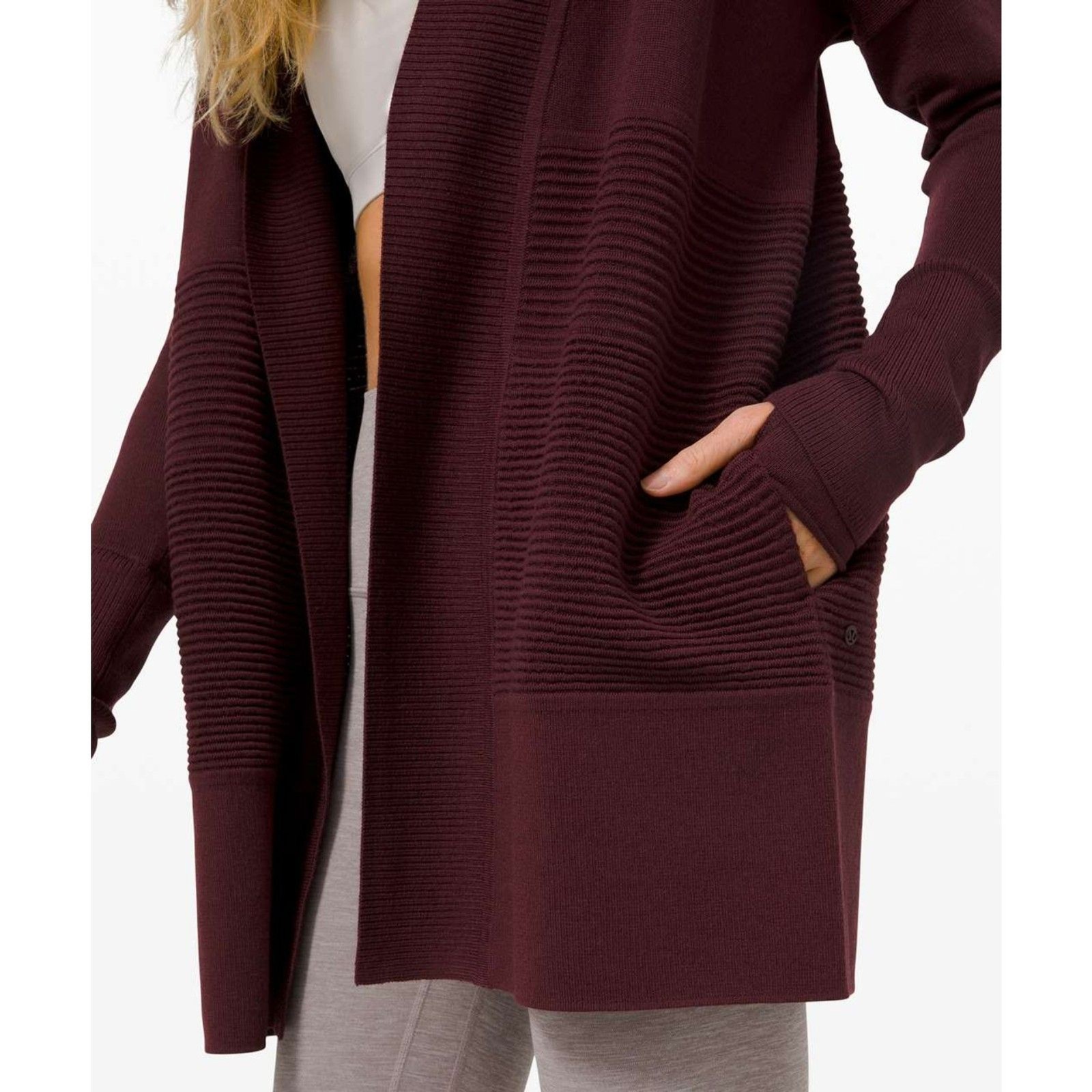 как выглядит Lululemon Sit In Lotus Wrap II Merino Wool Cardigan Pockets Size 6 Plum EUC фото