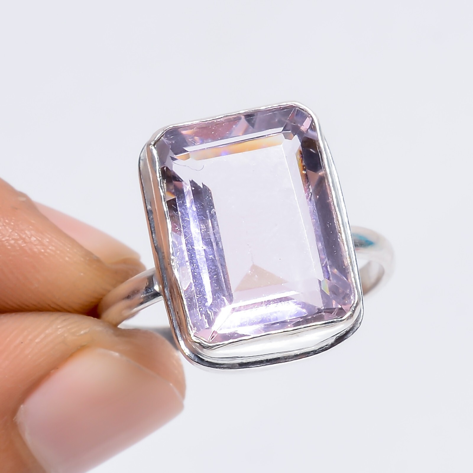 Trendy Fashion Jewelry Pink Amethyst Gemstone Handmade Ring 11 US Gift For Love