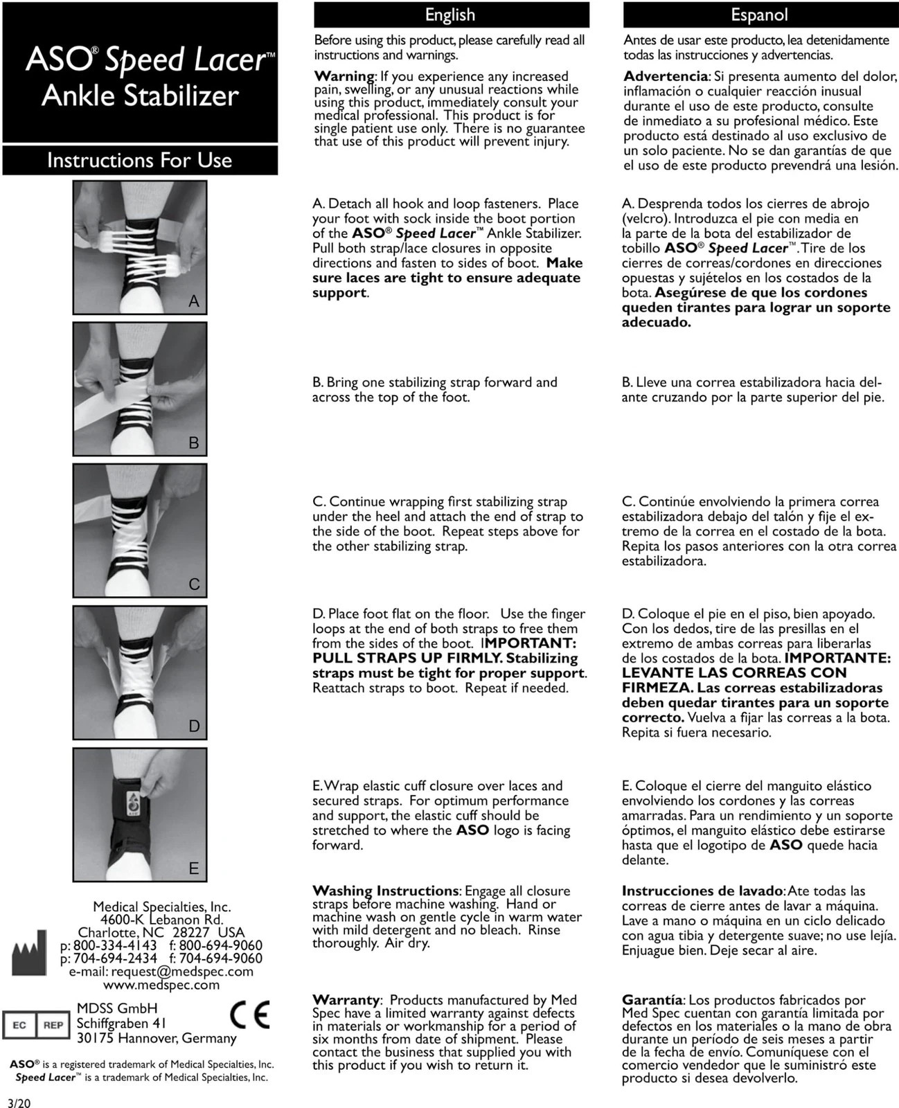 Med Spec ASO Ankle Stabilizer, White, Large MODEL 264005
