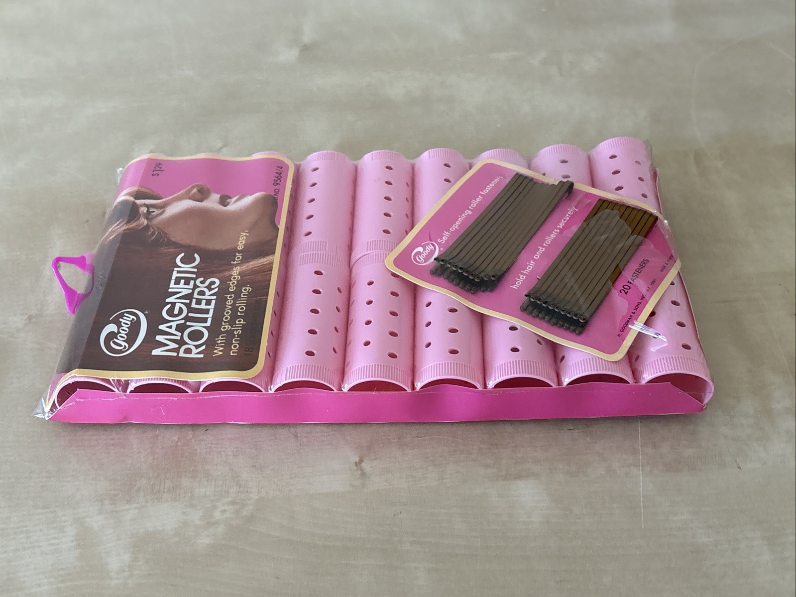 как выглядит 14 NEW Vintage GOODY Pink Magnetic 1-1/8 Rollers Curlers w/ Fasteners фото