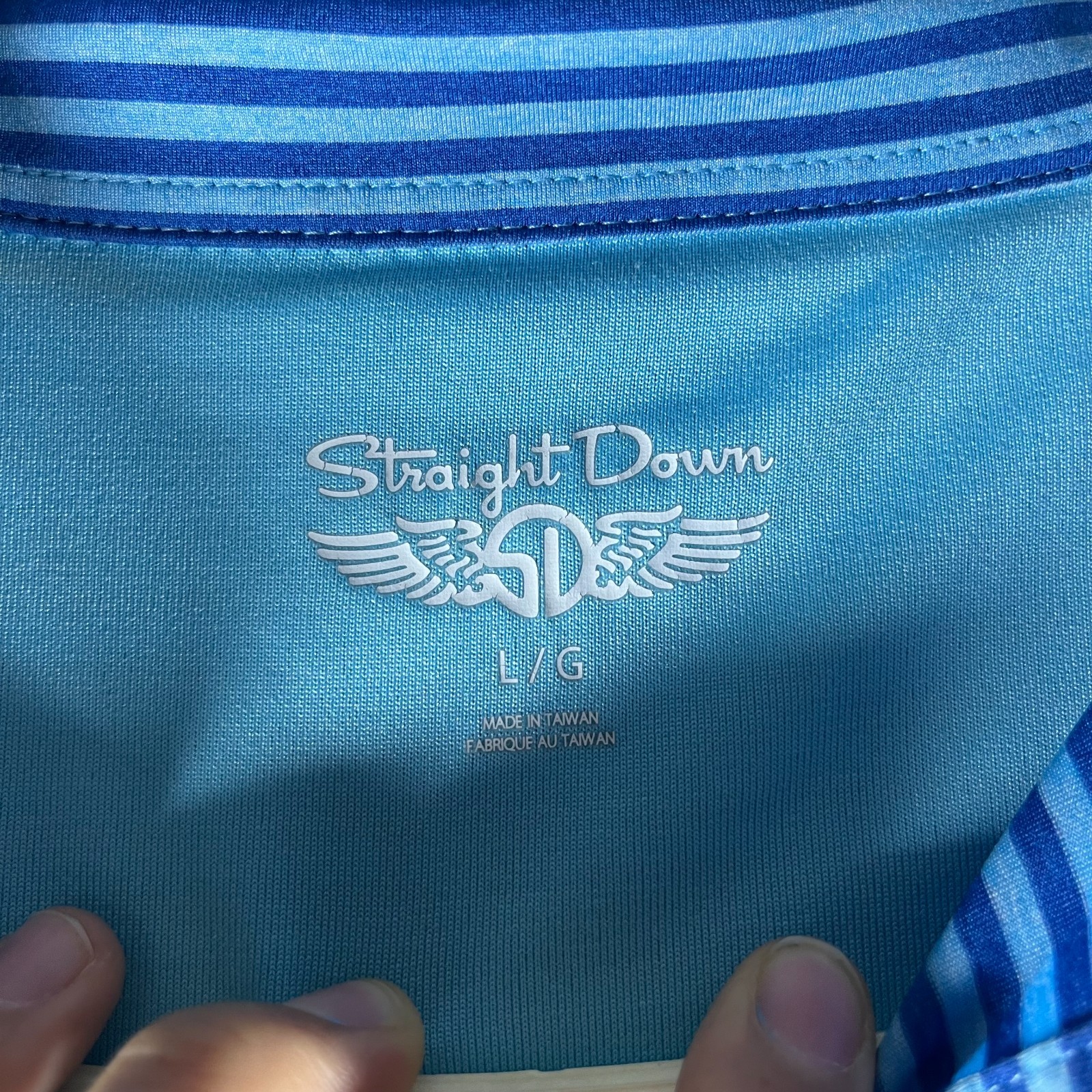 как выглядит Straight Down Men s Polo Shirt Size L Blue Striped Golf Short Sleeve Performance фото