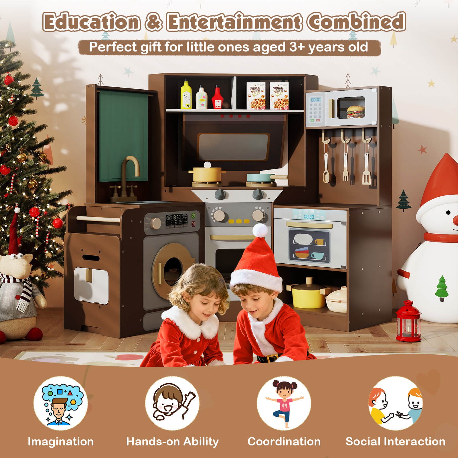 как выглядит Corner Kitchen with Lights and Sounds Interactive Wooden Playset for Ages 3 фото