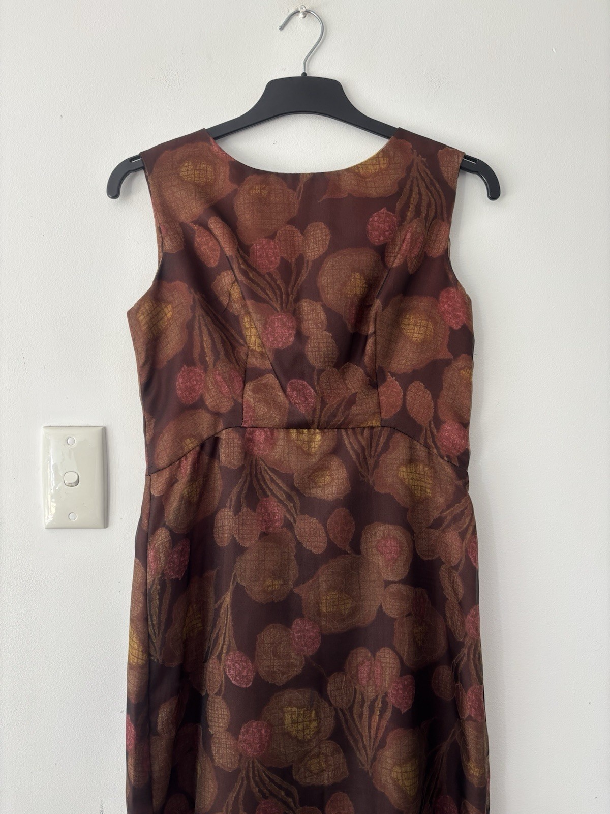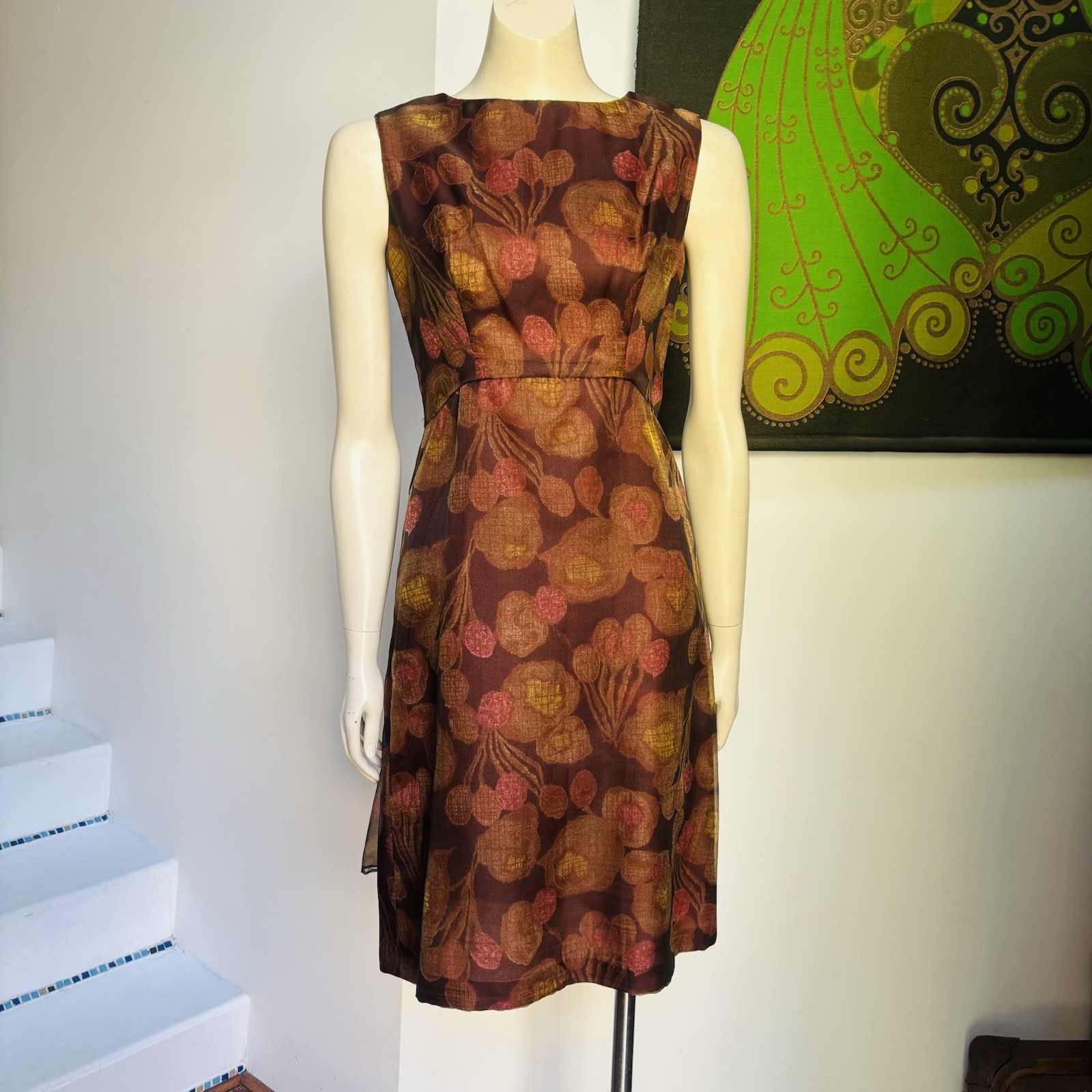 60's vintage BOW back brown berry dress S-M