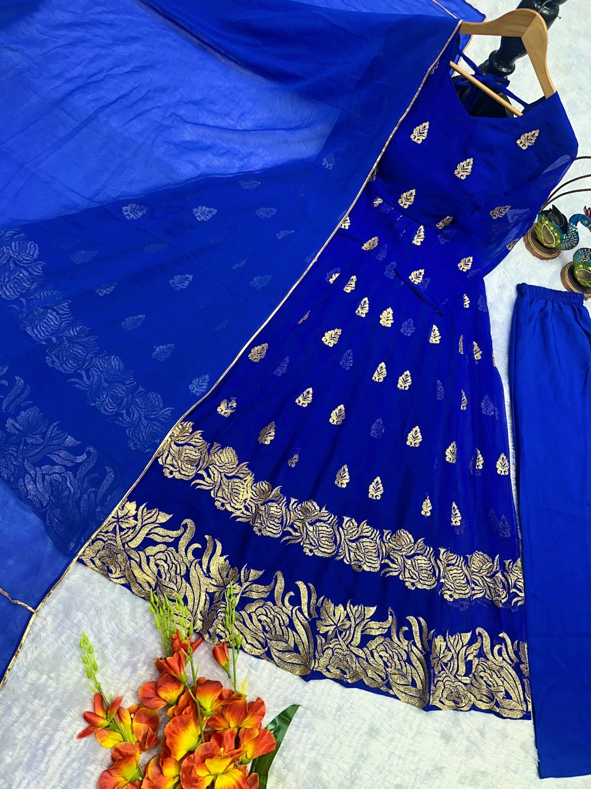 как выглядит Attractive Blue Heavy Georgette Gown Bottom And Dupatta For Festival Wear фото