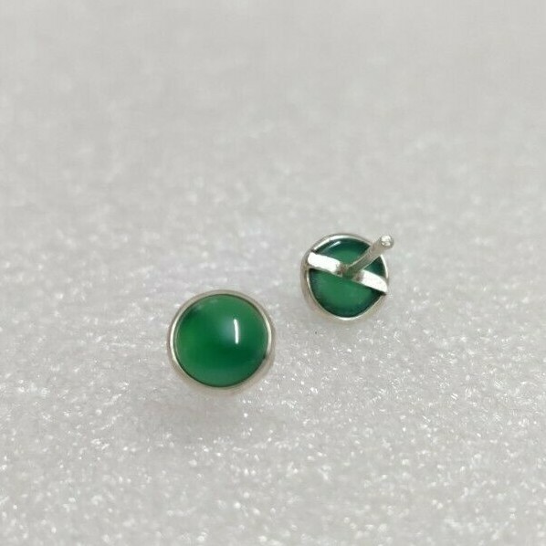 как выглядит Green Onyx Stud Earrings, 925 Sterling Silver Studs, Green Gemstone Tiny Studs фото